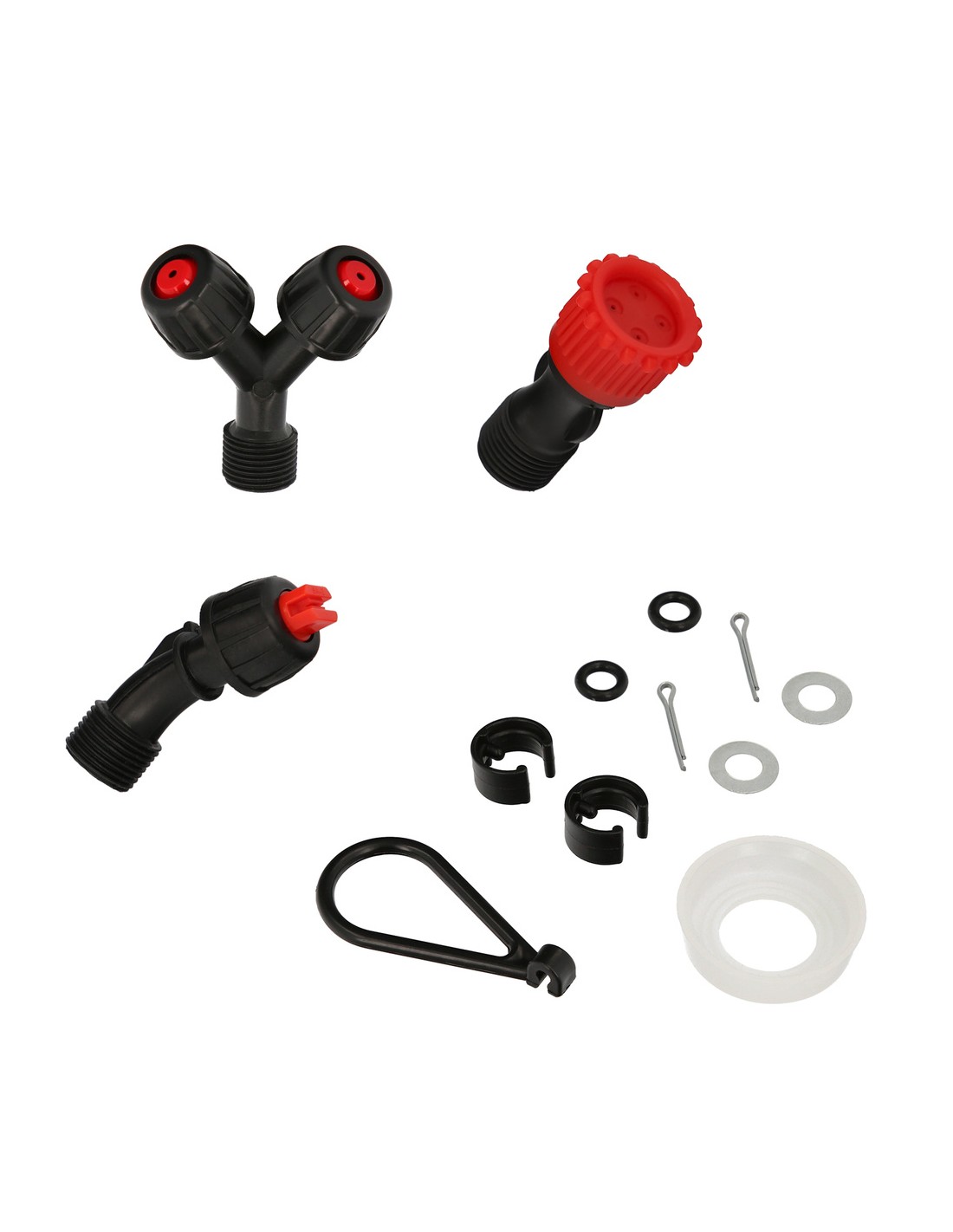 - Incluye 3 boquillas, juntas, horquillas, arandelas, tapon para la bomba, sujeta manivela y grapas.