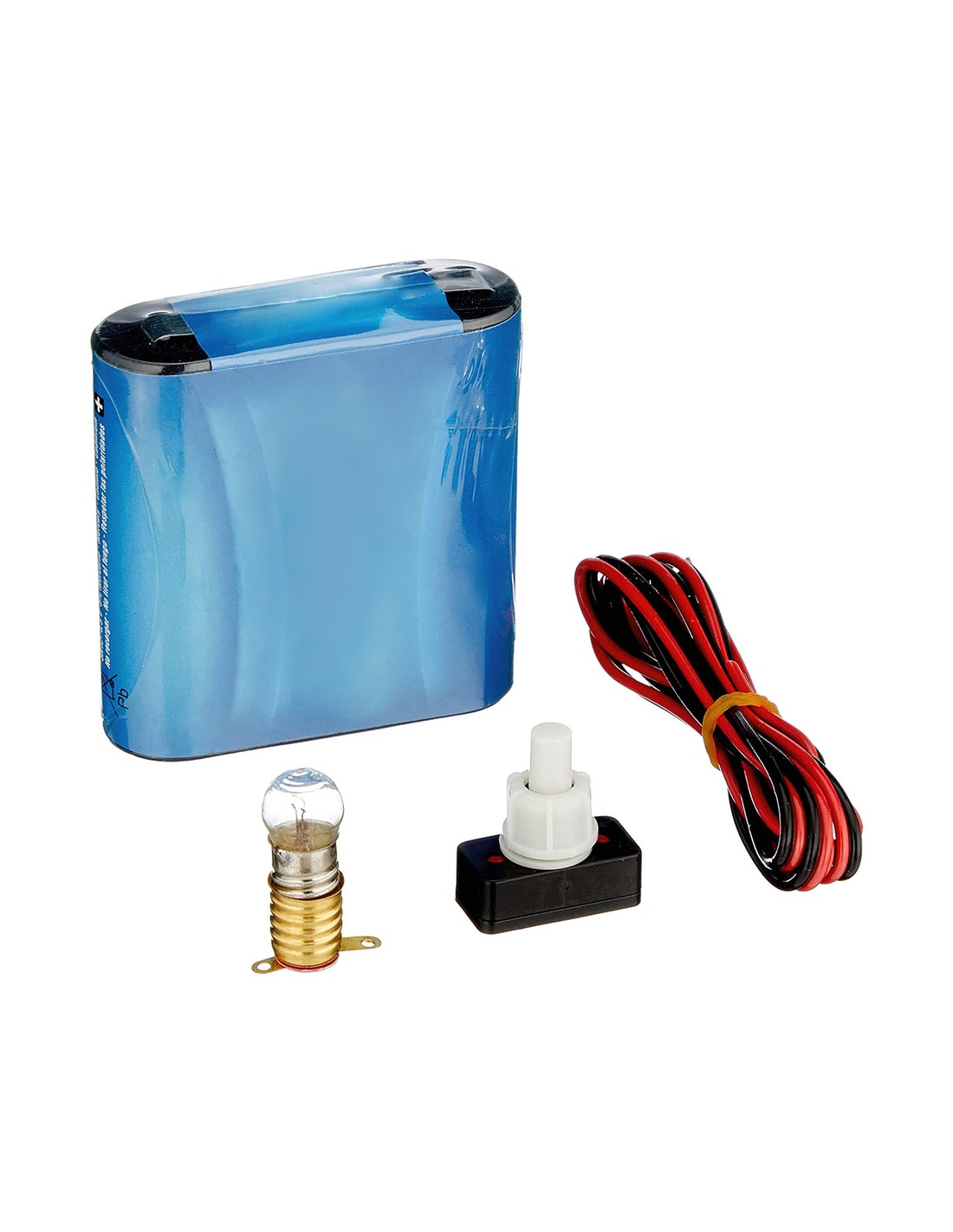 Kit Eléctrico Escolar, Set para el Colegio, Pila Petaca 4.5V, Interruptor 220V, Cable y Bombilla.