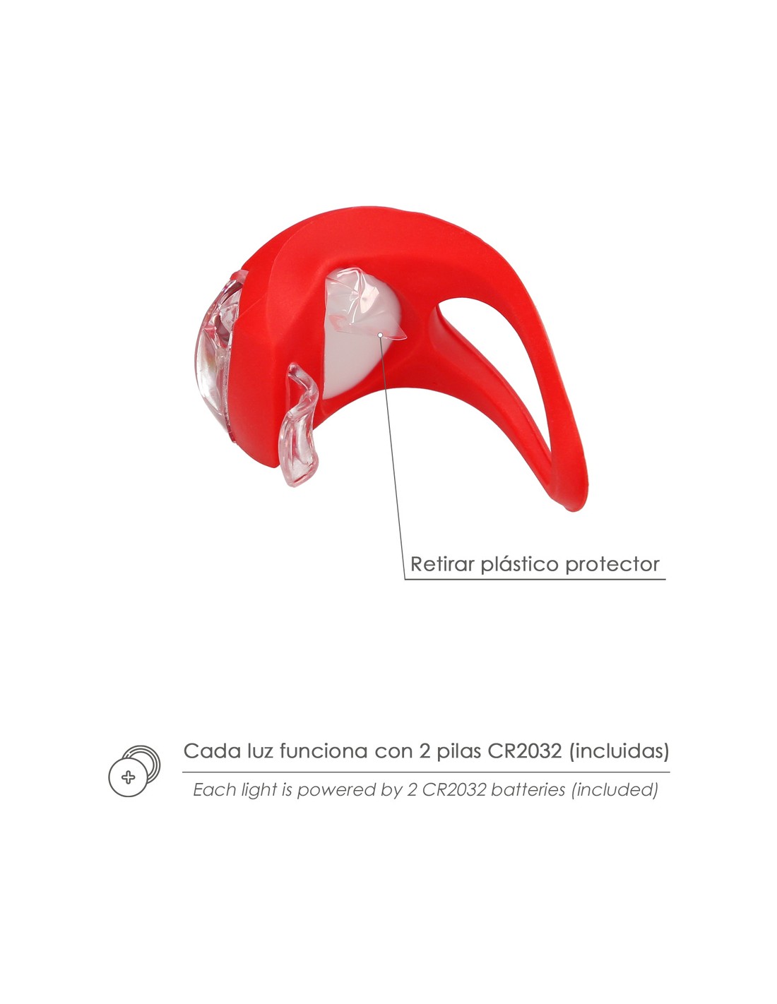 - Cada luz funciona con 2 baterías CR2032 (No recargables).