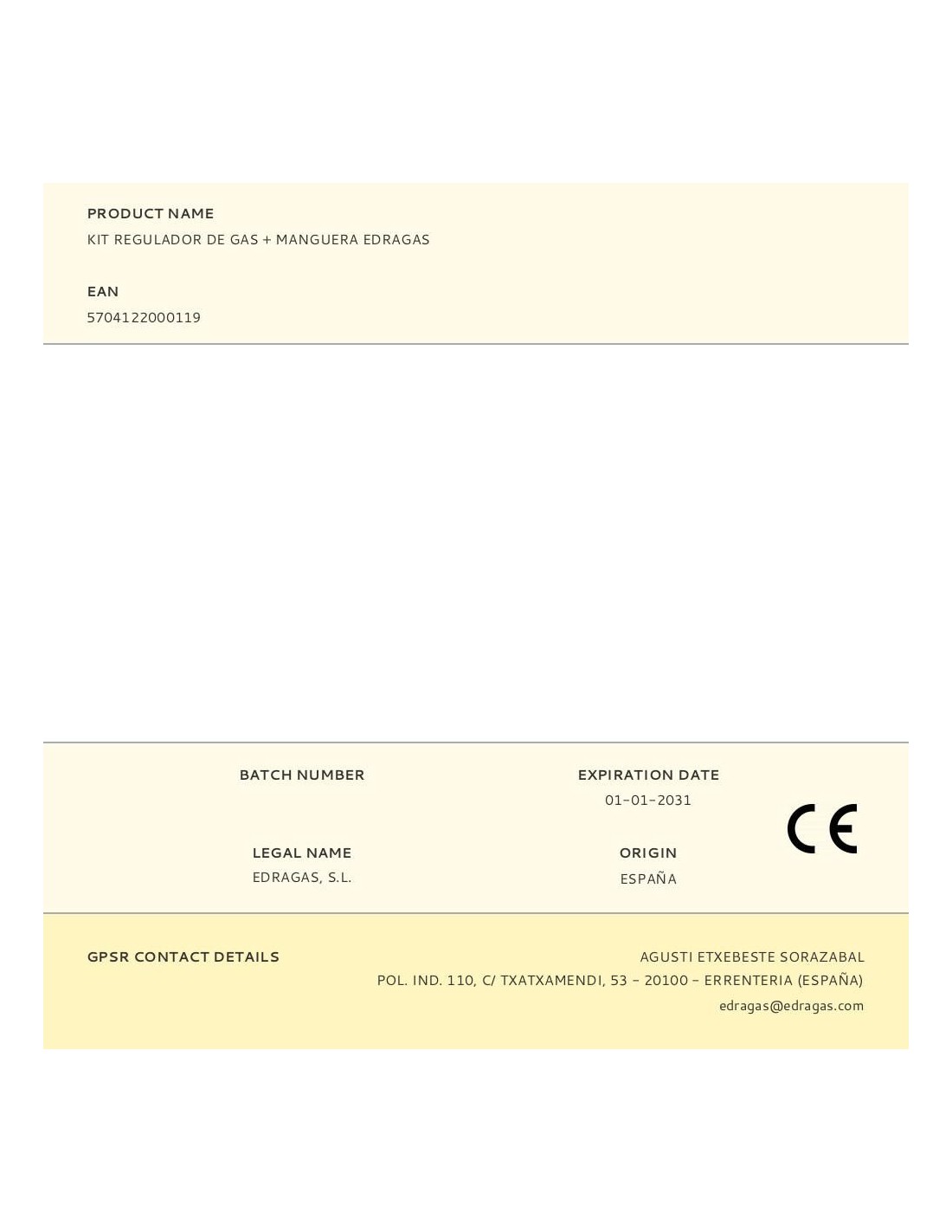 KIT REGULADOR DE GAS + MANGUERA EDRAGAS
