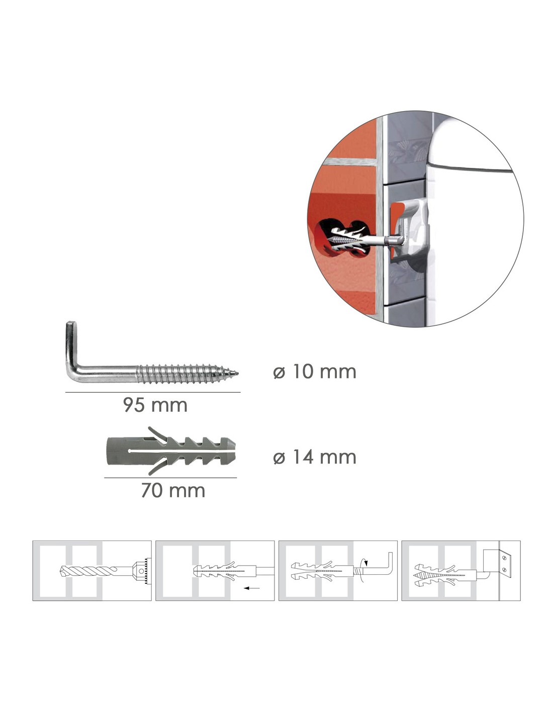Kit Sanitario Alcayata Con Taco Expansión Ø 14 x 70 mm. Fijación Calentadores / Termos De Agua