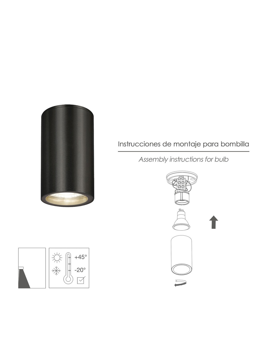 - Portalámparas GU10. (Lámpara no incluida)