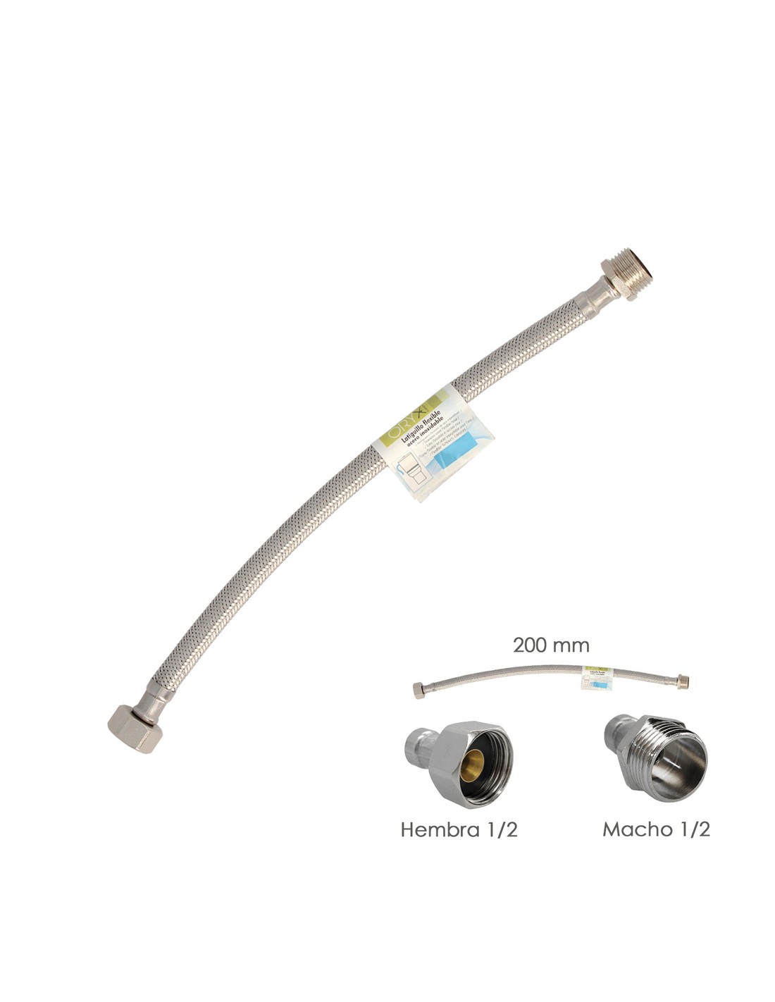 Latiguillo Flexible Acero Inoxidable Macho 1/2 - Hembra 1/2 - 200mm