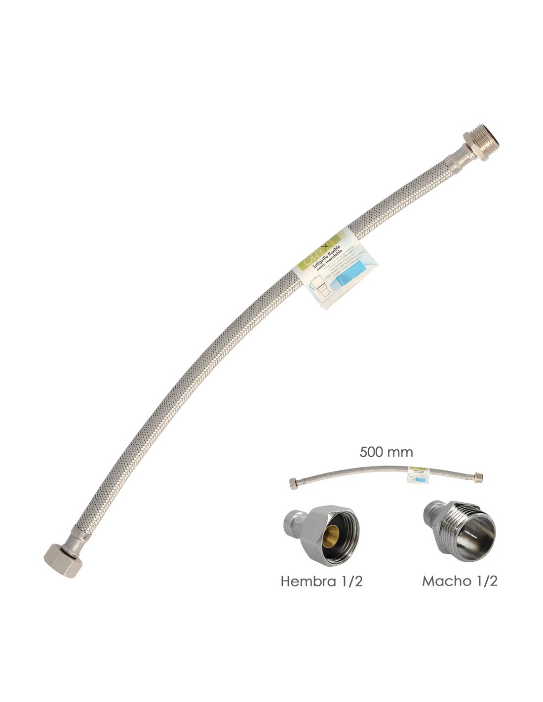 Latiguillo Flexible Acero Inoxidable Macho 1/2 - Hembra 1/2 - 500mm