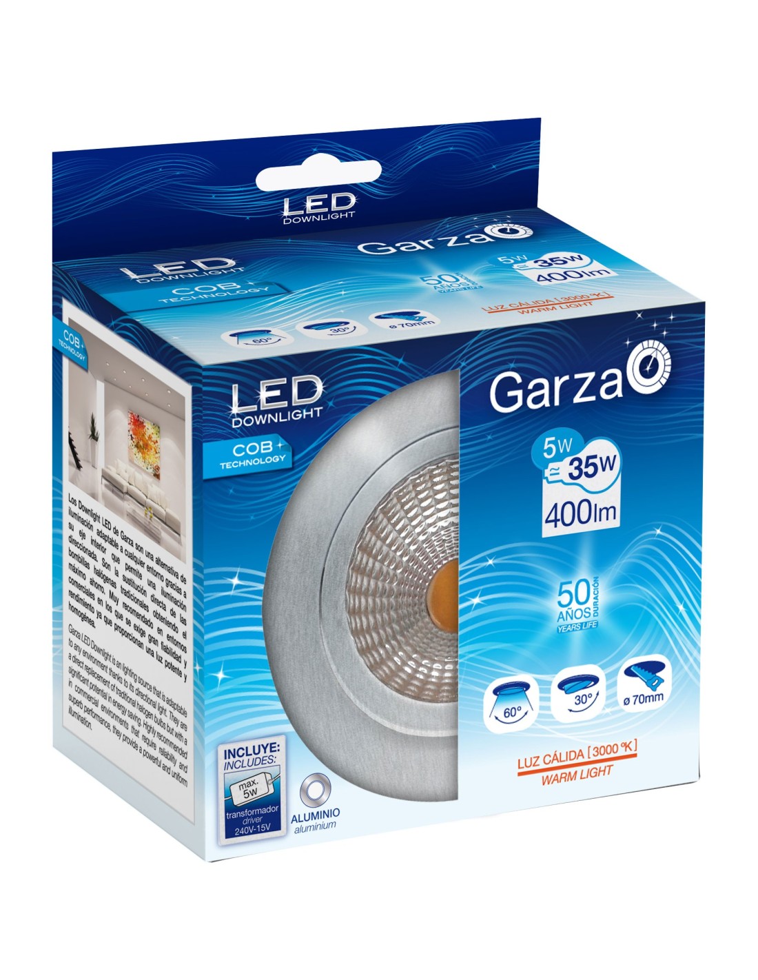 LED DOWNLIGHT 5W 3000K 20V 400LM C/DRIVE ALUM GRIS