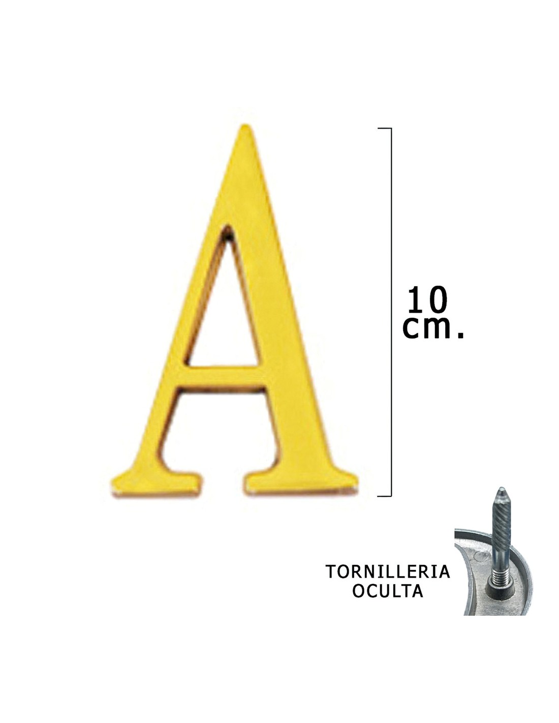 Letra Latón "A" 10 cm. con Tornilleria Oculta (Blister 1 Pieza)