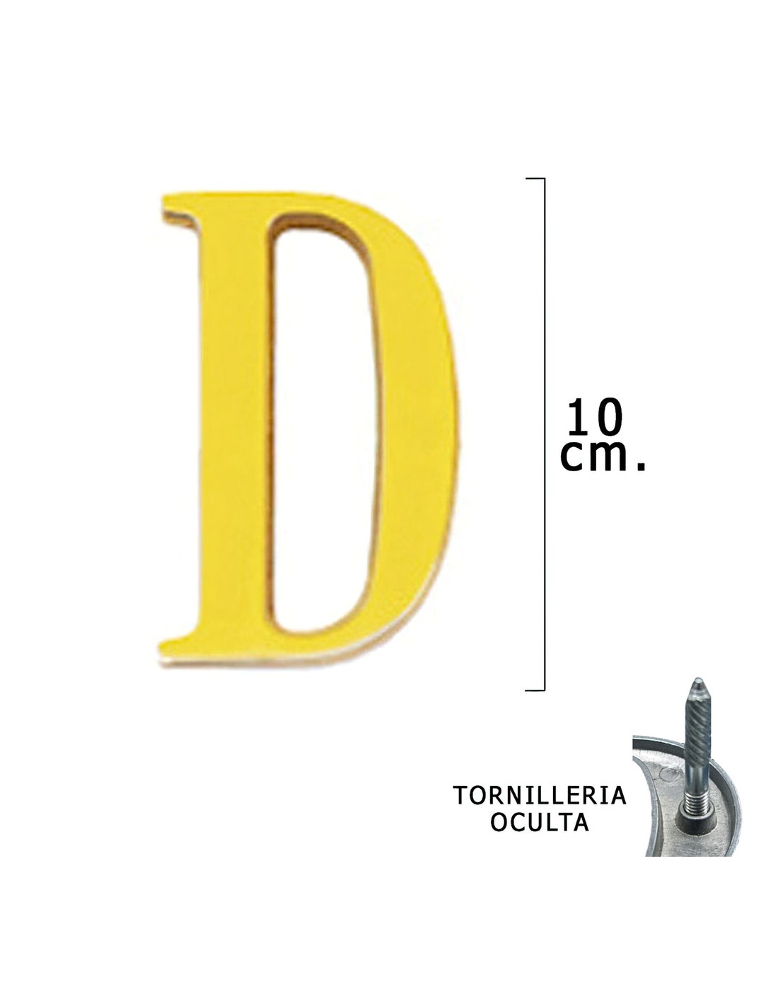 Letra Latón "D" 10 cm. con Tornilleria Oculta (Blister 1 Pieza)