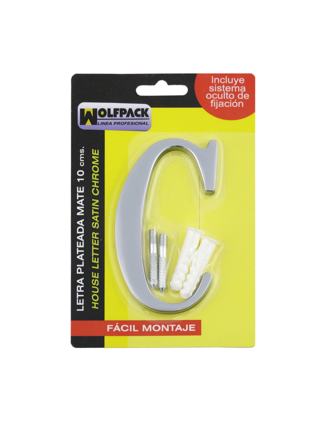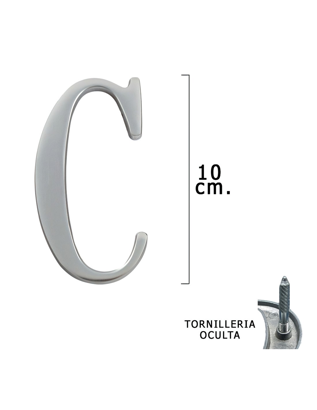 Letra Metal "C" Plateada Mate 10 cm. con Tornilleria Oculta (Blister 1 Pieza)