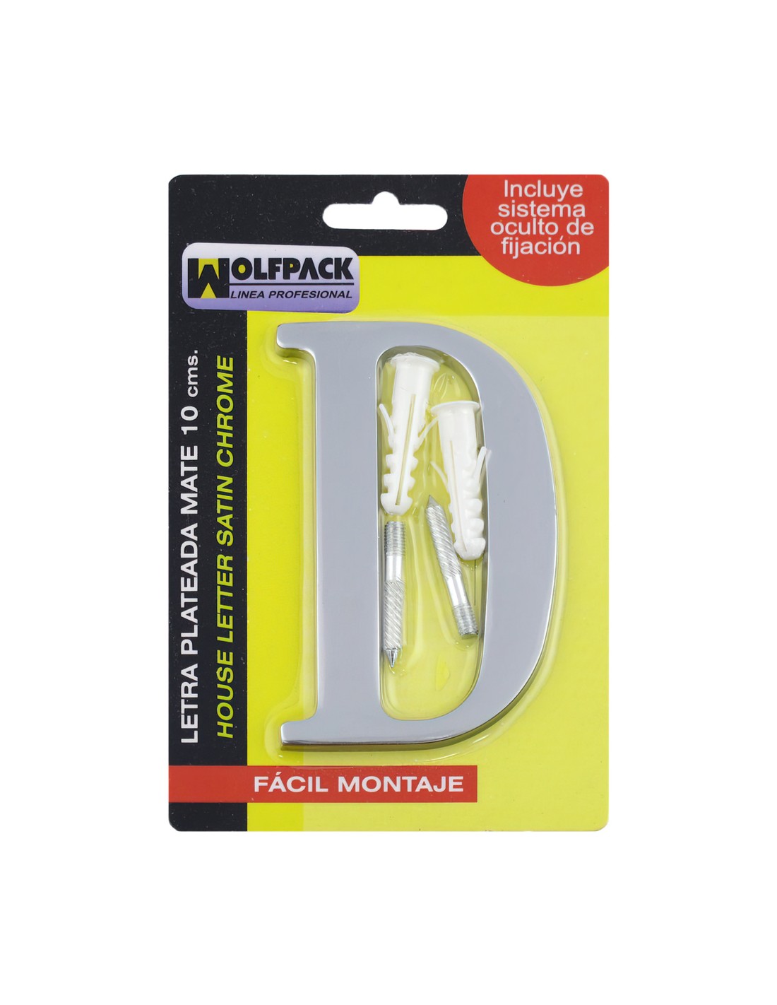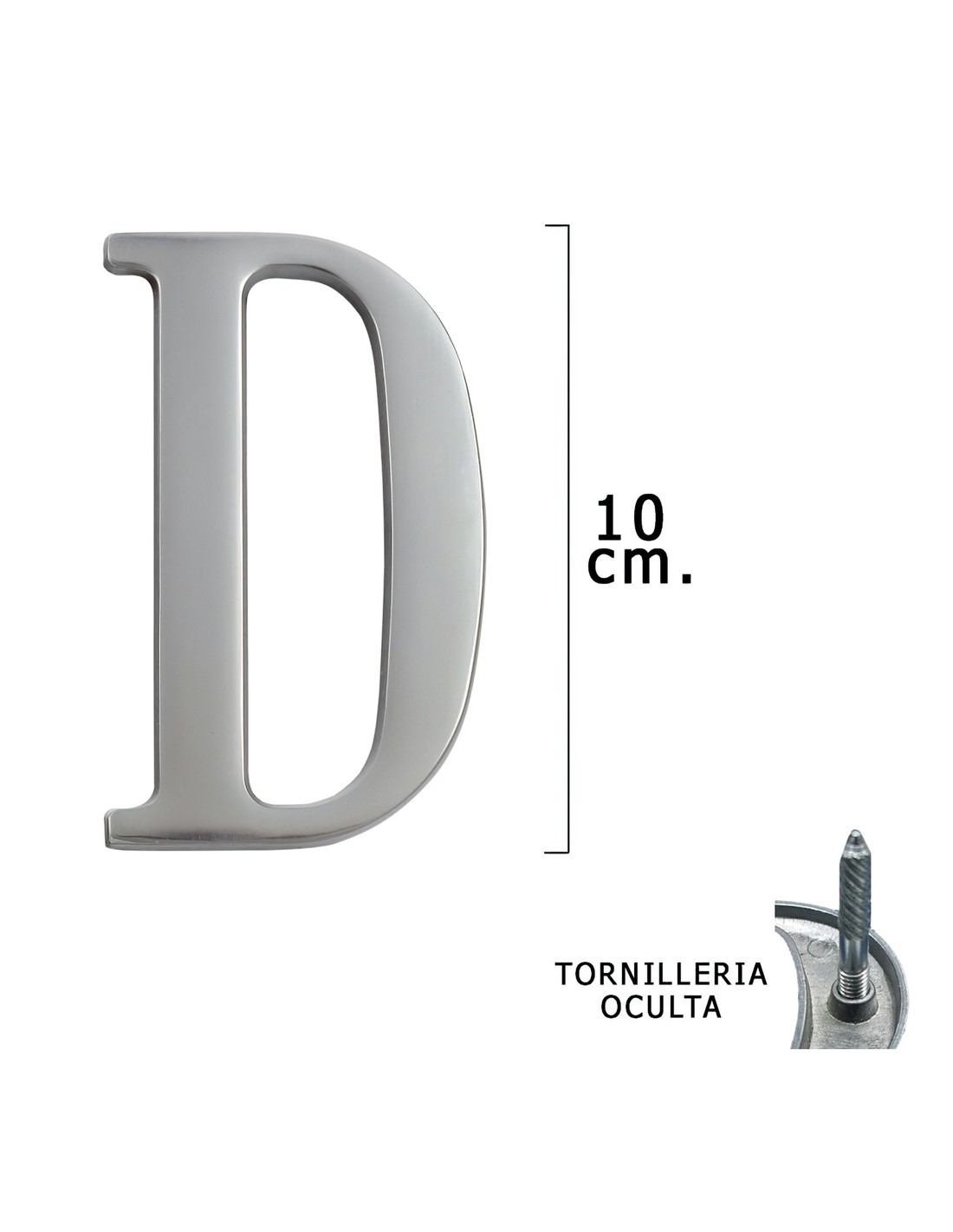 Letra Metal "D" Plateada Mate 10 cm. con Tornilleria Oculta (Blister 1 Pieza)