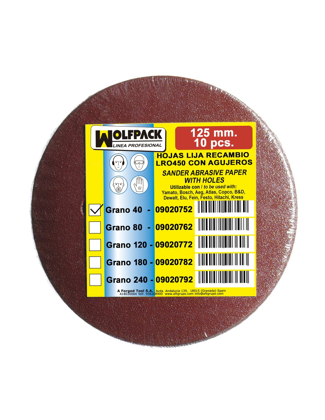Lija Recambio Velcro Para Lijadoras Excentricas Disco 125 Ø Con Agujeros Grano 40 (10 Piezas)