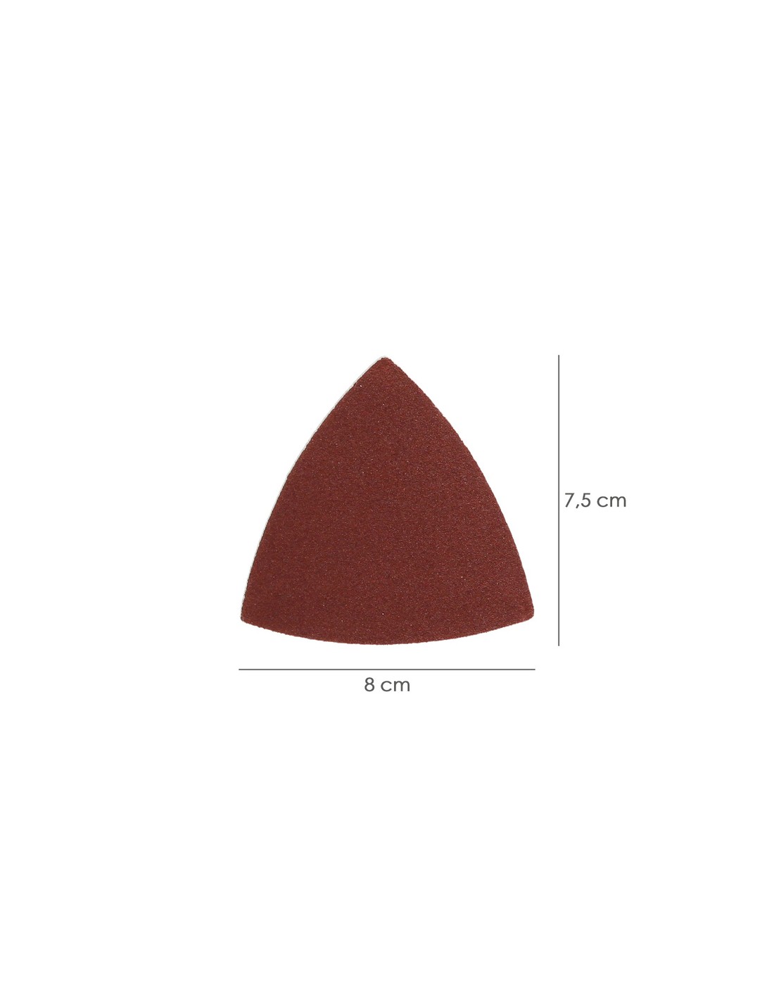 Lija Triangular Para Herramienta Multifuncion. - Pack 20 Lijas - Grano 80. - Con velcro en la parte posterior. - Ideal para lijar madera, metal, fibra de vidrio, pintura, etc.