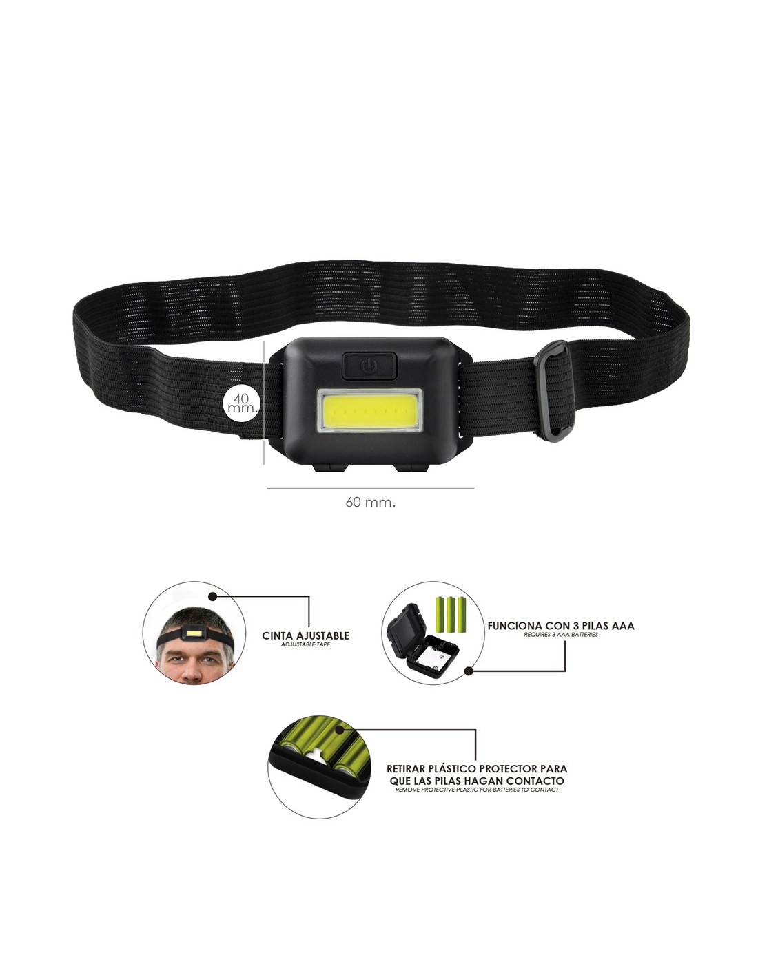 Linterna Led Frontal Cabeza Ajustable 120 Lumenes, 3 Modos, Cinta Ajustable, 3 Baterias AAA Incluidas