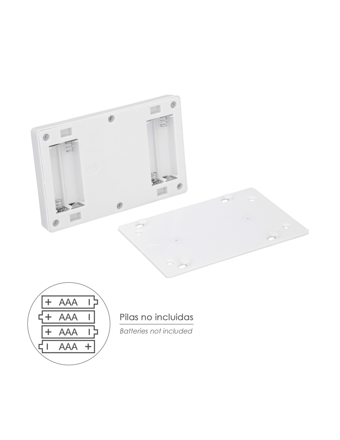 - Se puede fijar de 3 modos difentes, atornillando a la pared, mediante un iman en una superficie metalica o con la pegatina adhesiva de doble cara.
