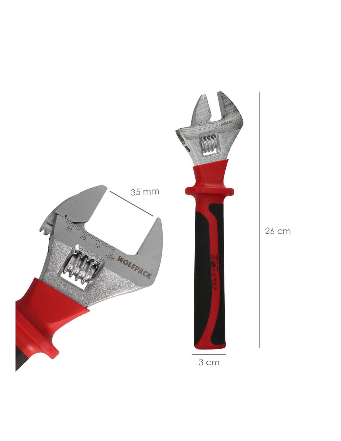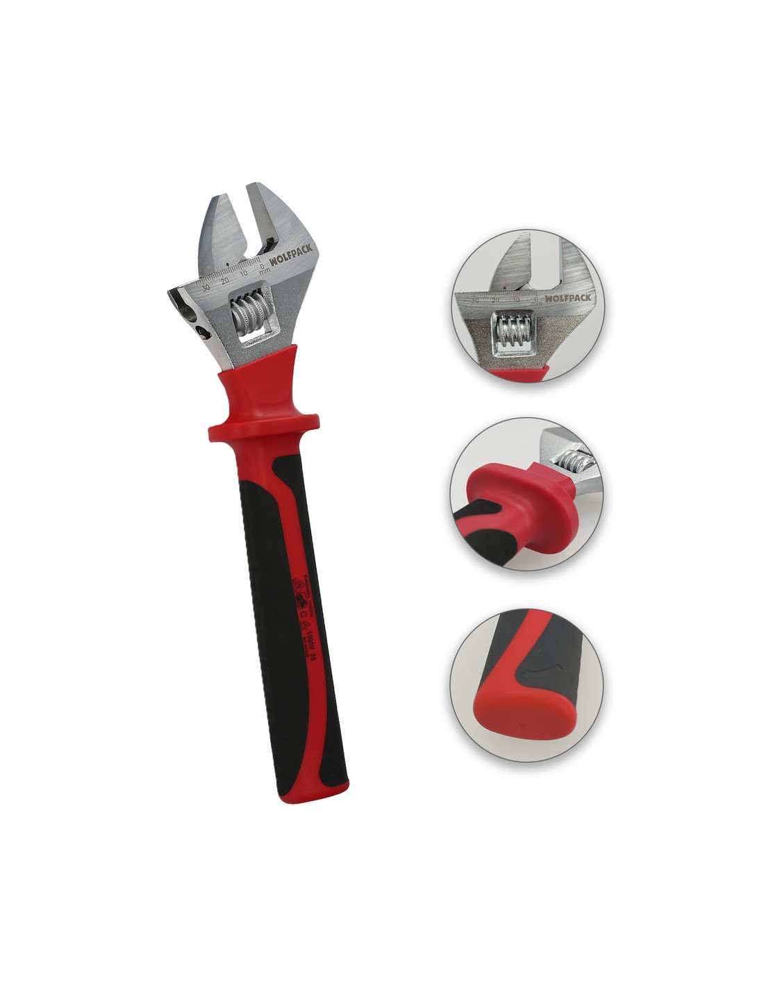 - La cabeza de esta llave está fabricada en acero cromo vanadio, lo que garantiza niveles superiores de dureza y resistencia, asegurando así su durabilidad a lo largo del tiempo. Sus mangos están aislados y cuentan con certificación VDE de 1.000 V, brindándote la seguridad que necesitas en cada tarea.