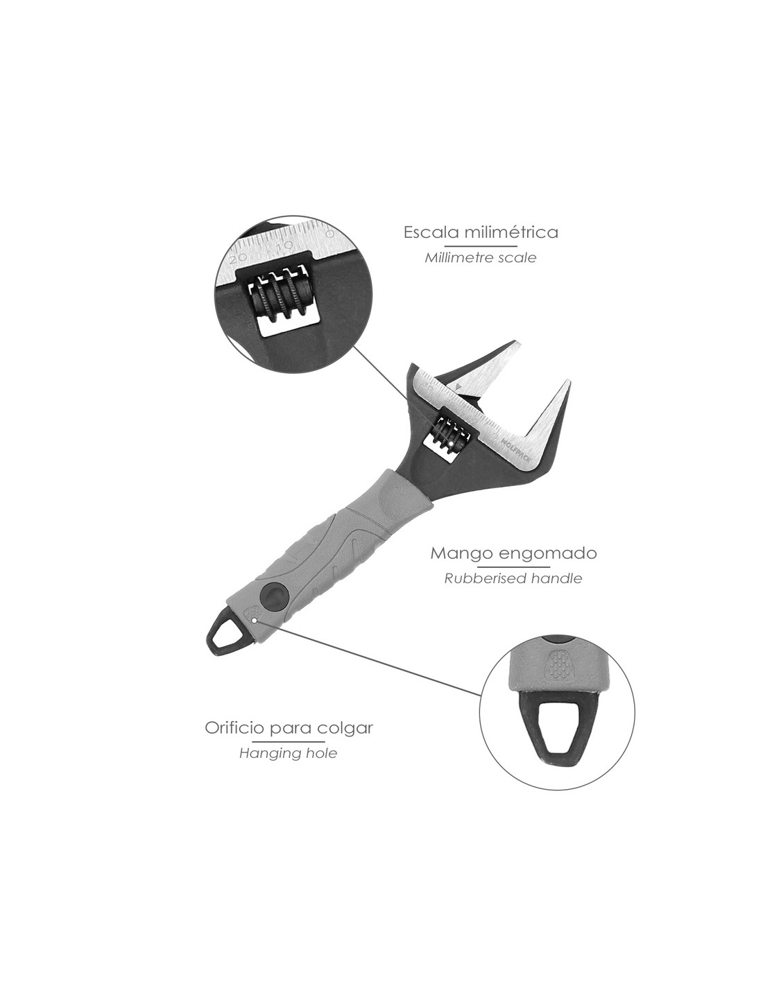 - Artículo también conocido como llave inglesa, llave de expansión, llave de tuercas ajustable, llave de tuercas, llave universal, llave moleta,