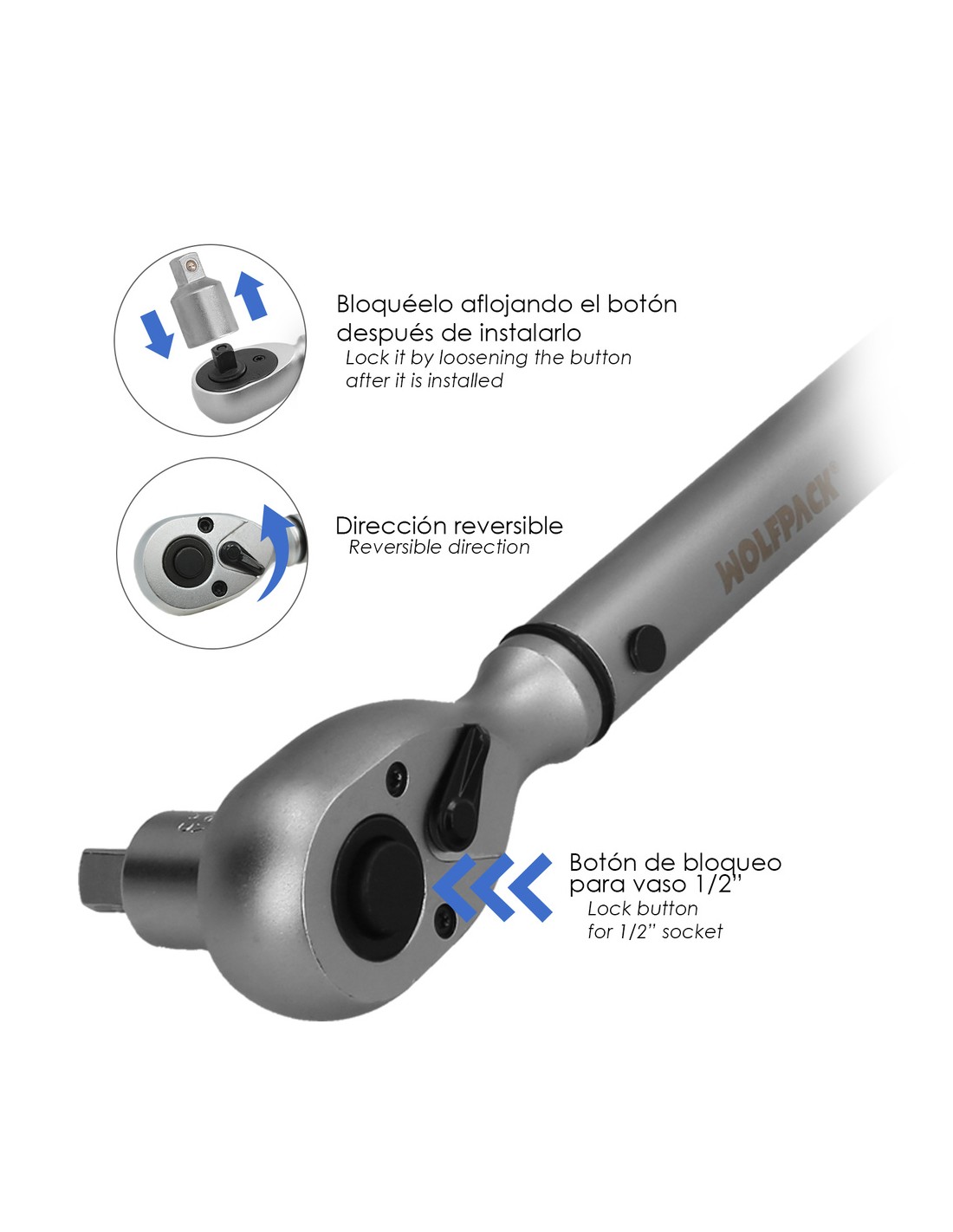 - Fabricada en acero cromo vanadio, aportando una alta resistencia y durabilidad. Con botón de bloqueo para los vasos. Mango ergonómico estriado para un óptimo agarre. Con selector de dirección para apretar / desapretar.