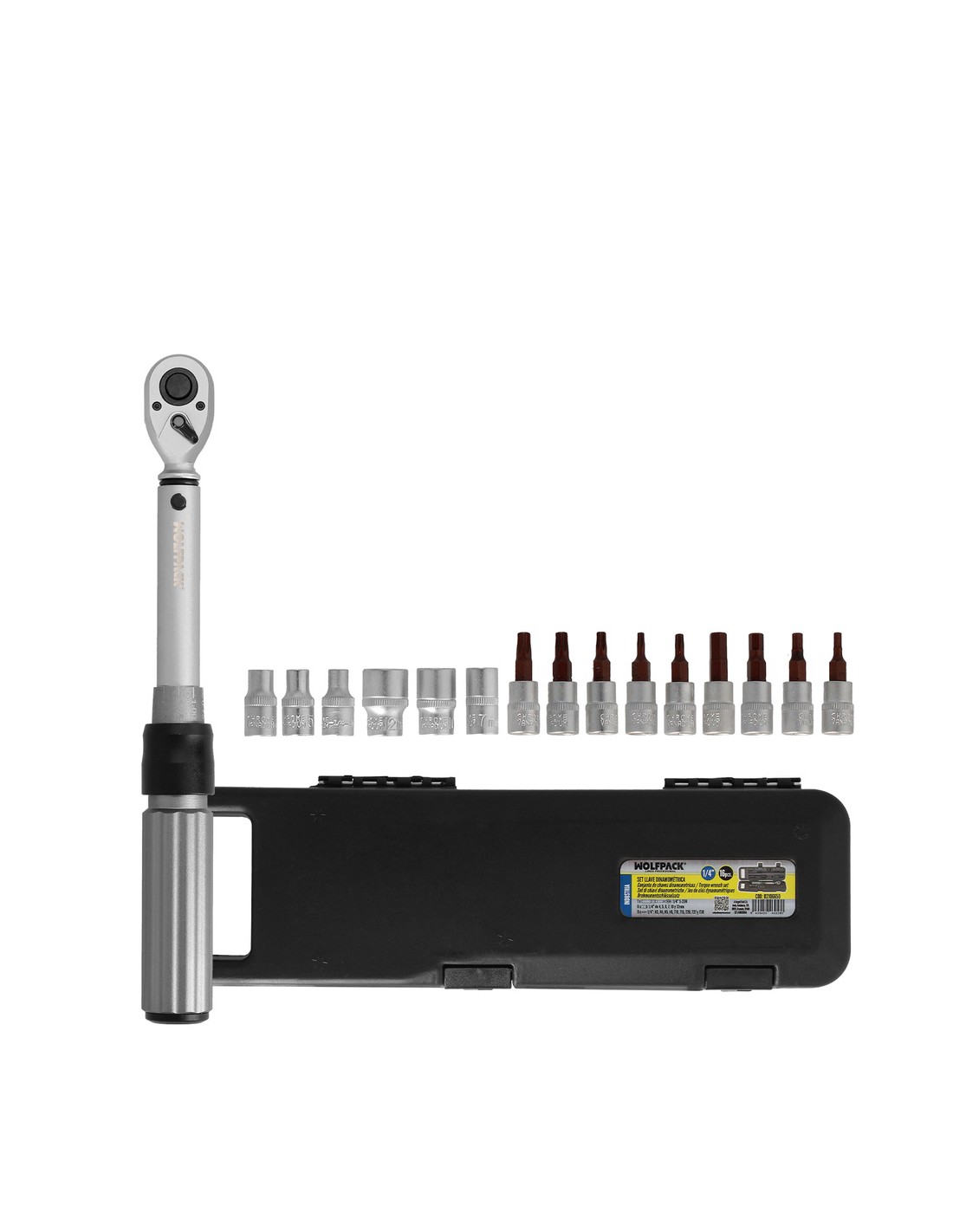 Llave Dinamometrica 1/4" Con 9 Puntas Hexagonales y 5 Vasos. Llave De Torque Camiones, Coches, Motos, Micro Ajustes, Acero CRV