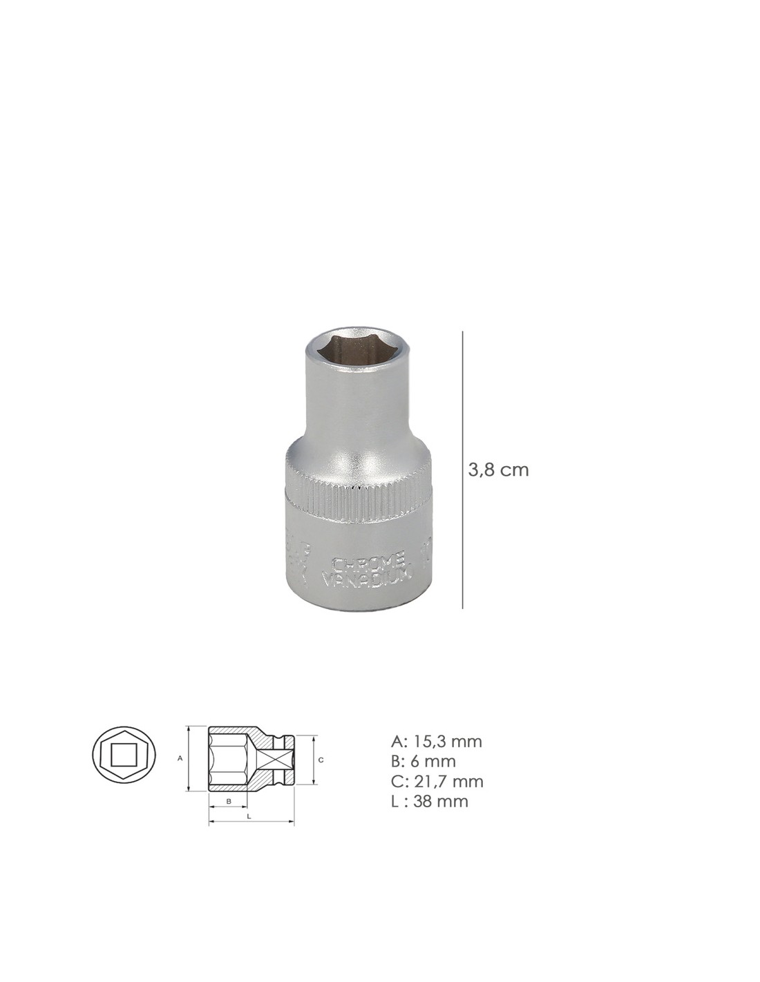 Llave Vaso 1/2" Hexagonal 10 mm. Perfil de 6 caras. Acero Cromo Vanadio, Aristas Redondas