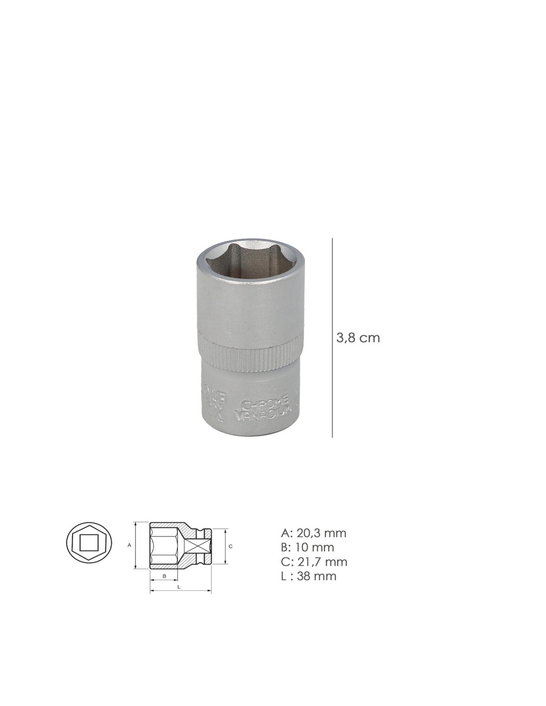 Llave Vaso 1/2" Hexagonal 14 mm. Perfil de 6 caras. Acero Cromo Vanadio, Aristas Redondas