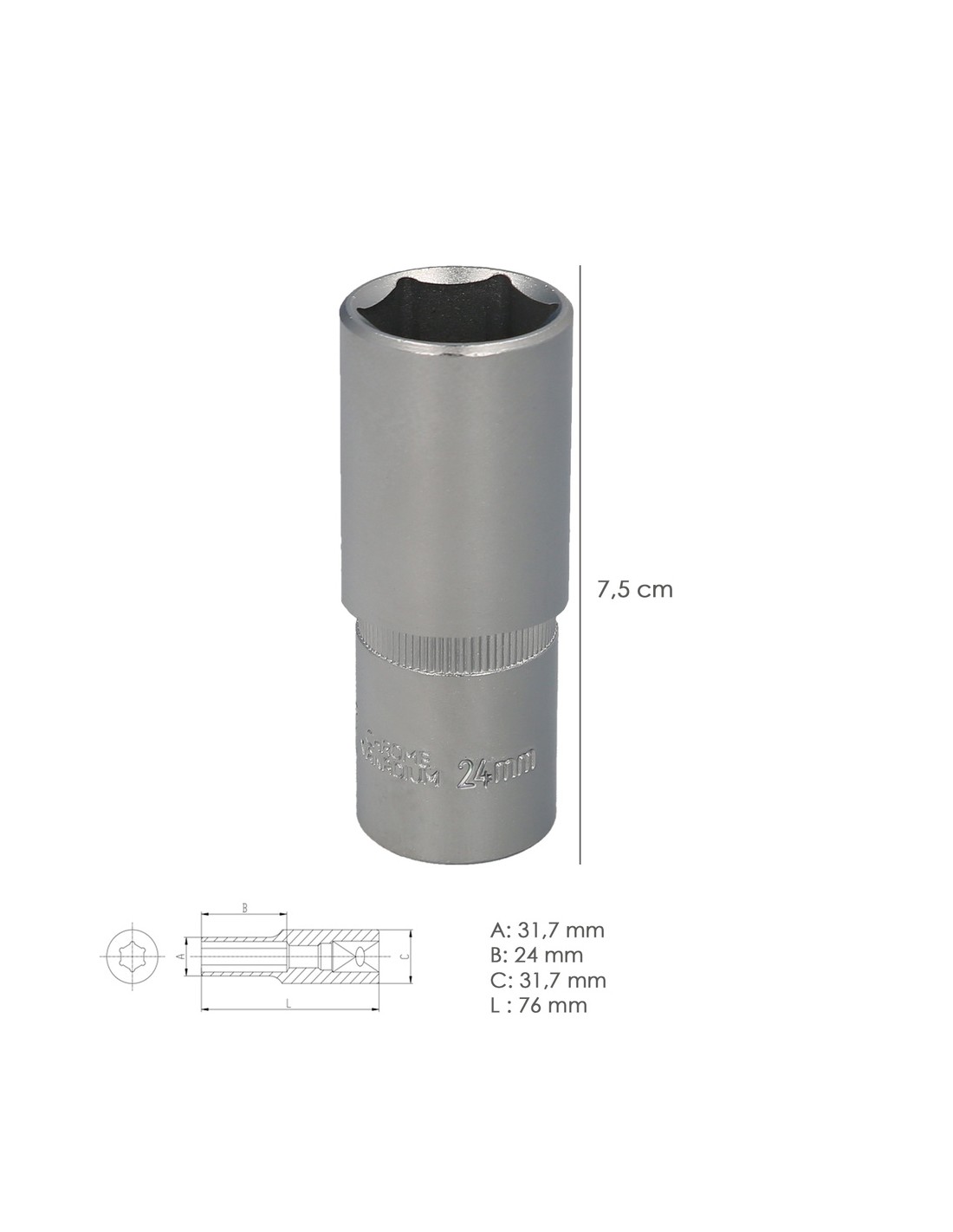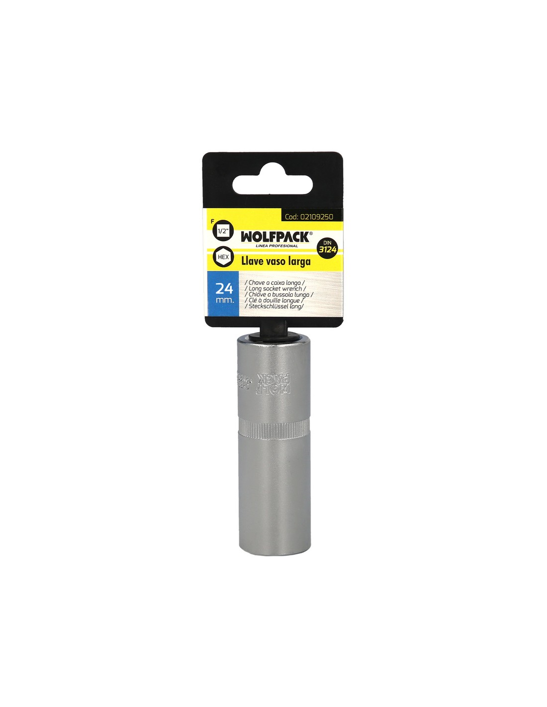 Llave Vaso 1/2" Hexagonal Larga 24 mm. Perfil de 6 caras. Acero Cromo Vanadio, Aristas Redondas