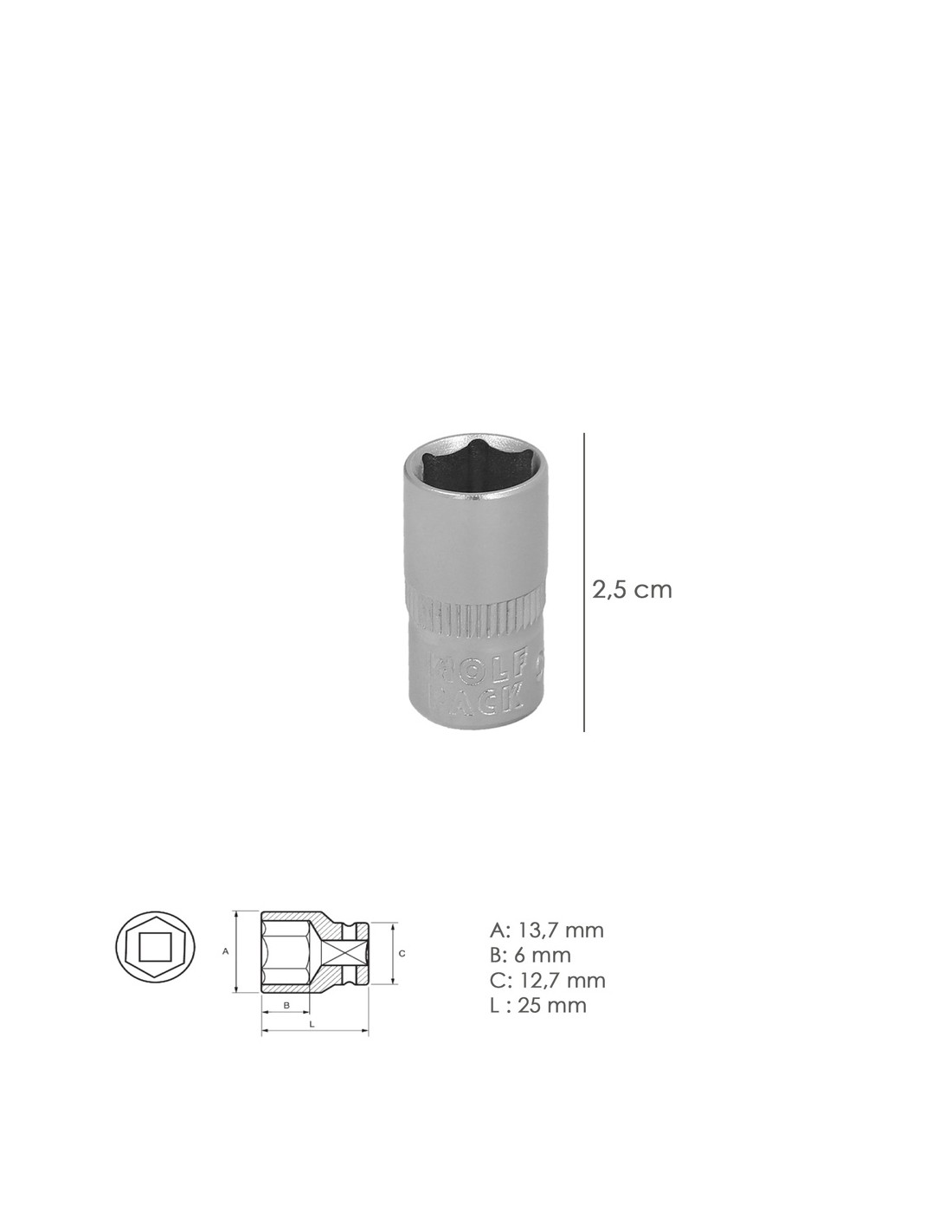Llave Vaso 1/4" Hexagonal 10 mm. Perfil de 6 caras. Acero Cromo Vanadio, Aristas Redondas