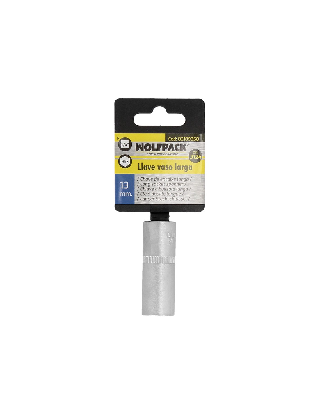 Llave Vaso 1/4" Hexagonal Larga 13 mm. Perfil de 6 caras. Acero Cromo Vanadio, Aristas Redondas