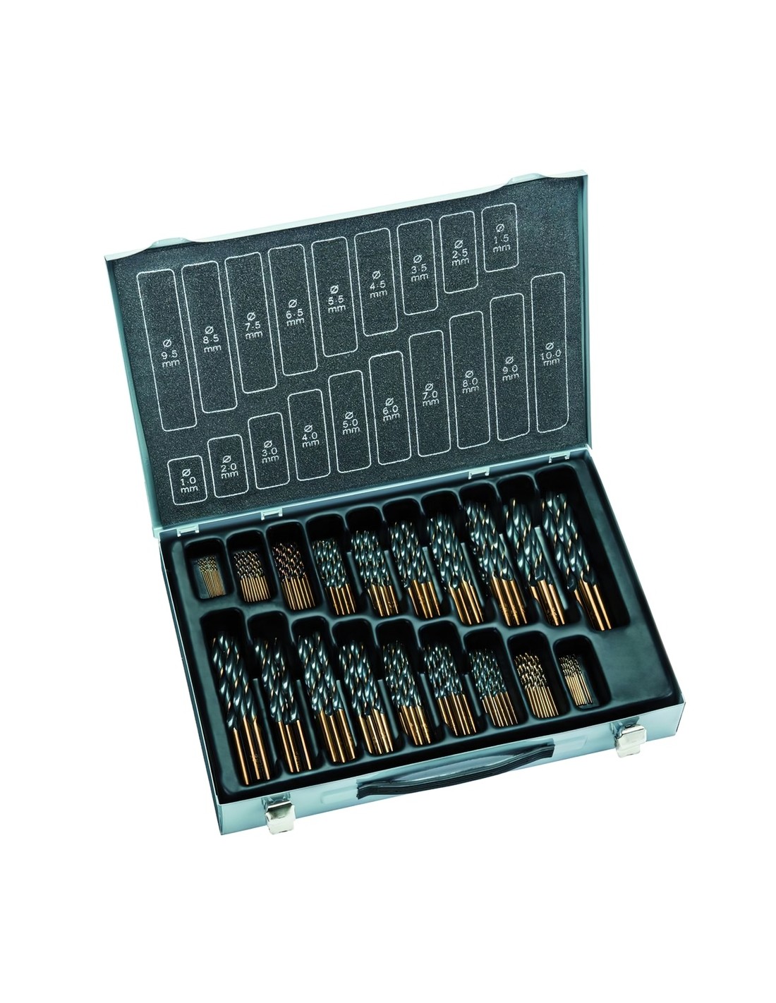 - 10 brocas de cada medida: diametros: 1,0 / 1,5 / 2,0 / 2,5 / 3,0 / 3,5 / 4,0 / 4,5 / 5,0 / 5,5 / 6,0 / 6,5 / 7,0 / 7,5 / 8,0