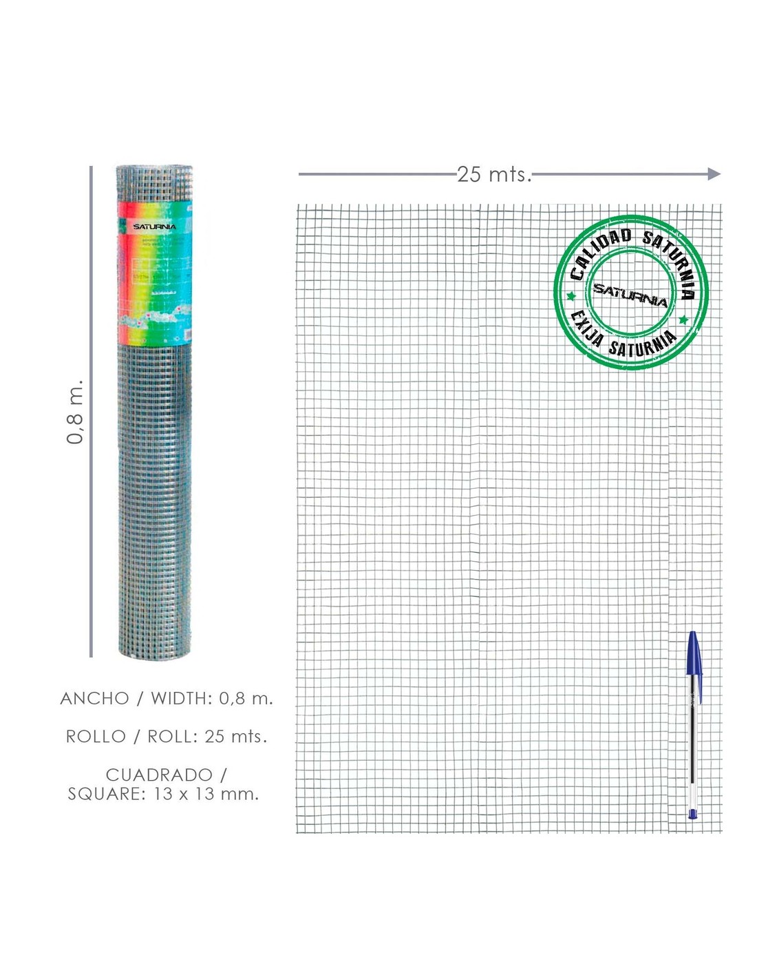 Malla Electrosoldada Galvanizada 13x13 / 80 cm. Rollo 25 Metros Uso Domestico