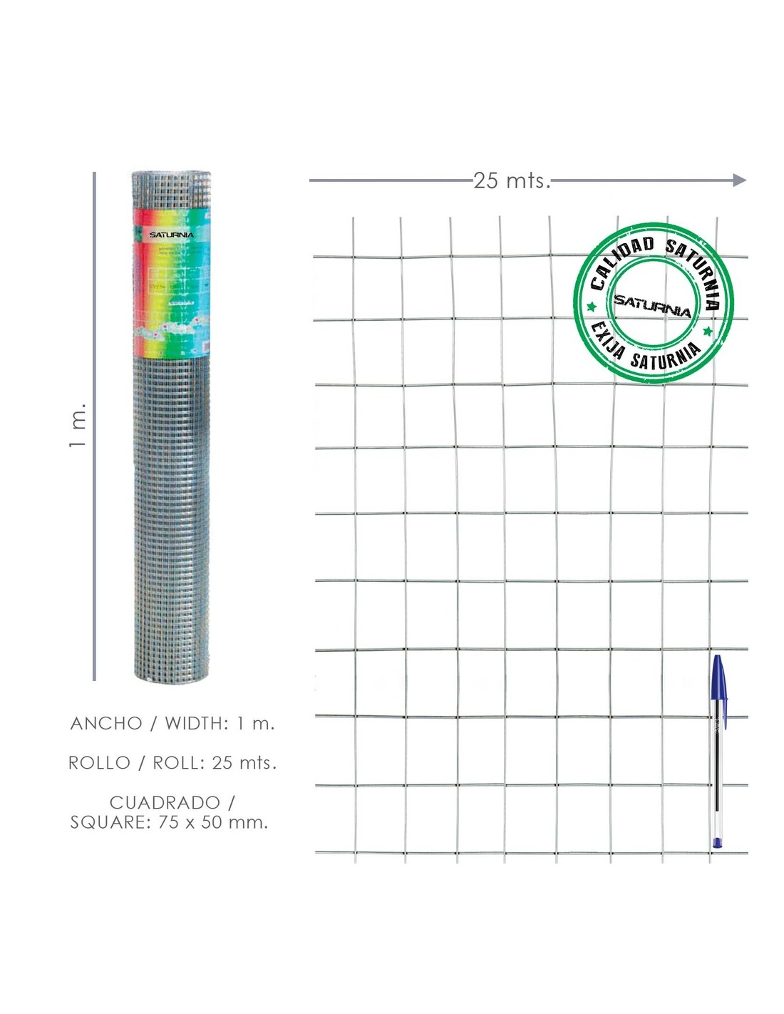 Malla Electrosoldada Galvanizada 75x50 / 1,80 / 100 cm. GA Rollo 25 metros