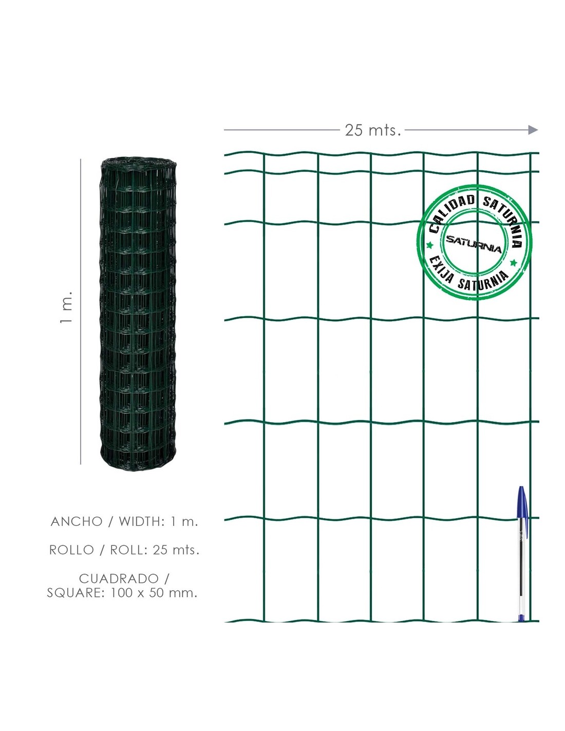 Malla Plastificada Country 100x50 / 100 cm. rollo 25 Metros