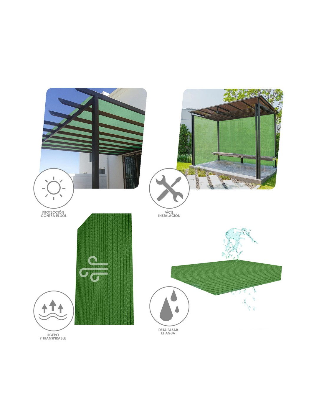- Permiten el paso del aire y del agua por lo que son perfectas para el sombreo de porches y jardines.