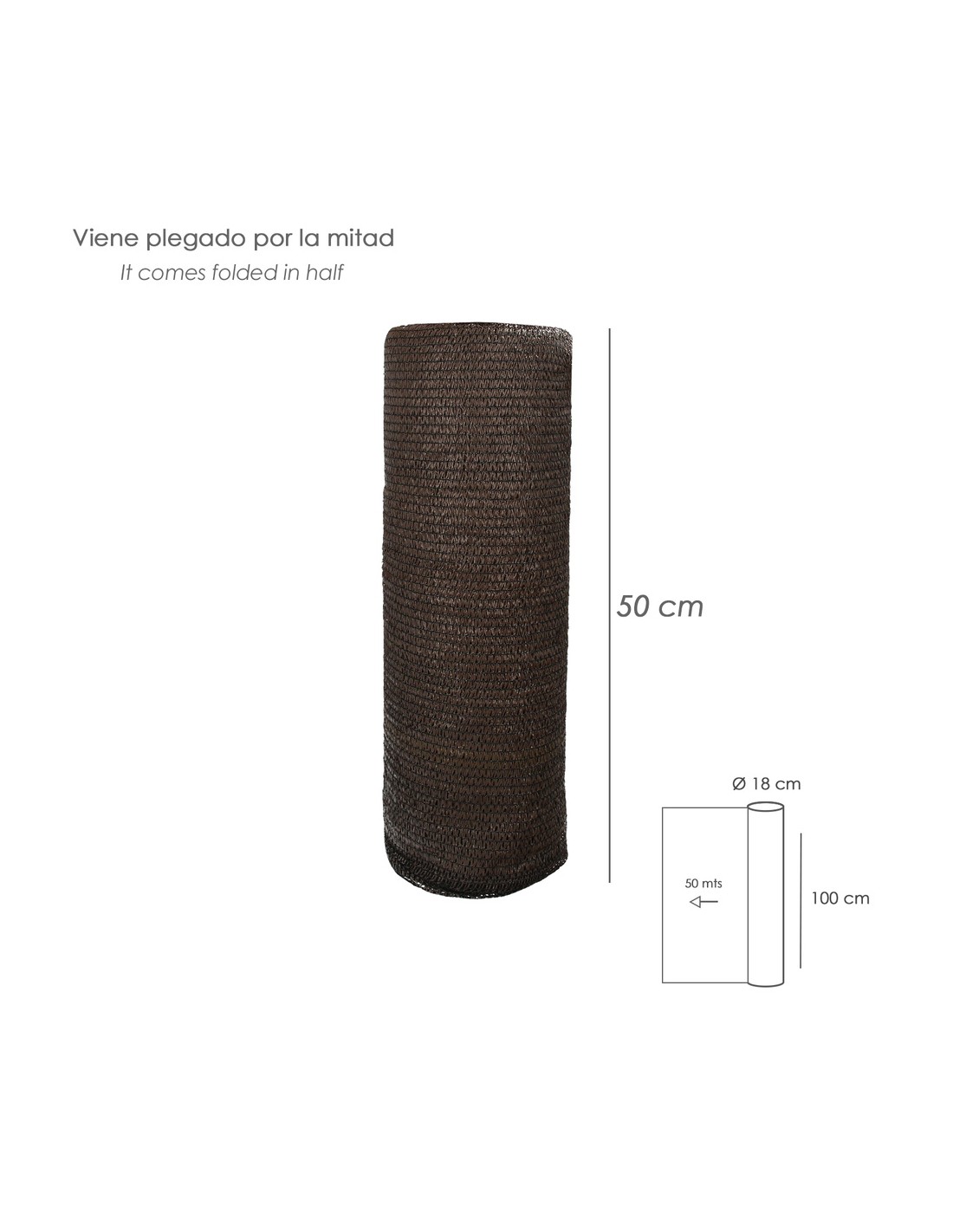 Malla Sombreo Rollo 1 x 50 metros, Reduce Radiación, Protección Jardín y Terraza, Regula Temperatura, Color Marrón