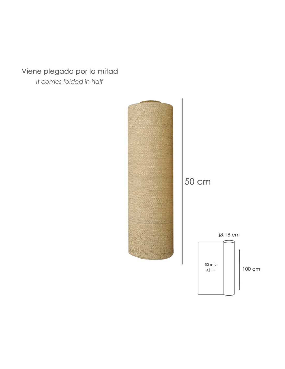 Malla Sombreo Rollo 1.0 x 50 metros, Reduce Radiación, Protección Jardín y Terraza, Regula Temperatura, Color Beige