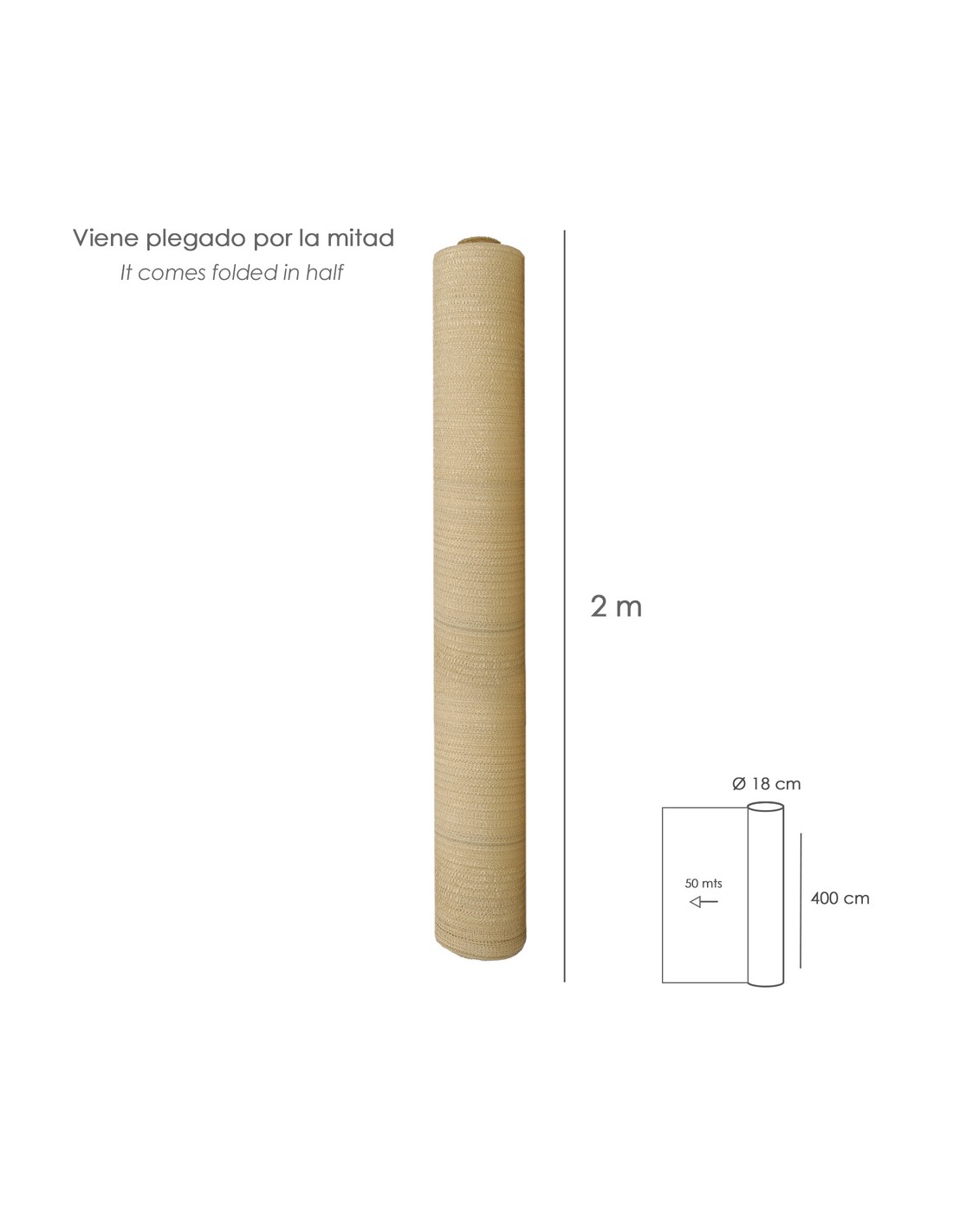 Malla Sombreo Rollo 4 x 50 metros, Reduce Radiación, Protección Jardín y Terraza, Regula Temperatura, Color Beige