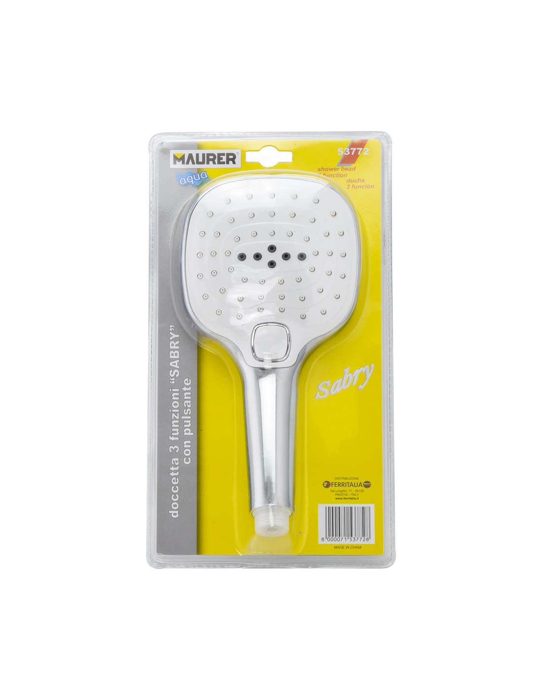 Maneral ducha - Ø rociador: 120 mm. - Cuenta con 3 funciones de salida de agua. - Con pulsador para intercambiar funciones. - Cromado. - Articulo tambien conocido como: rociador, mango, telefono ducha, alcachofa ducha, cormoterapia, maneral led,