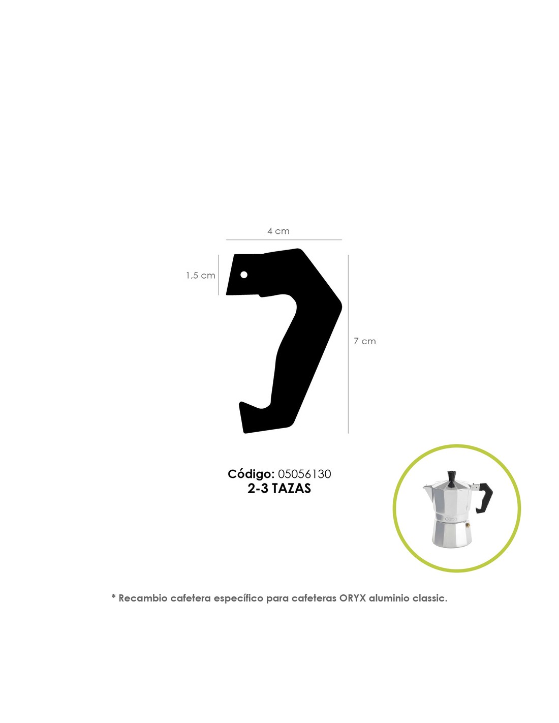 - Recambio cafetera específico para cafeteras ORYX aluminio classic.