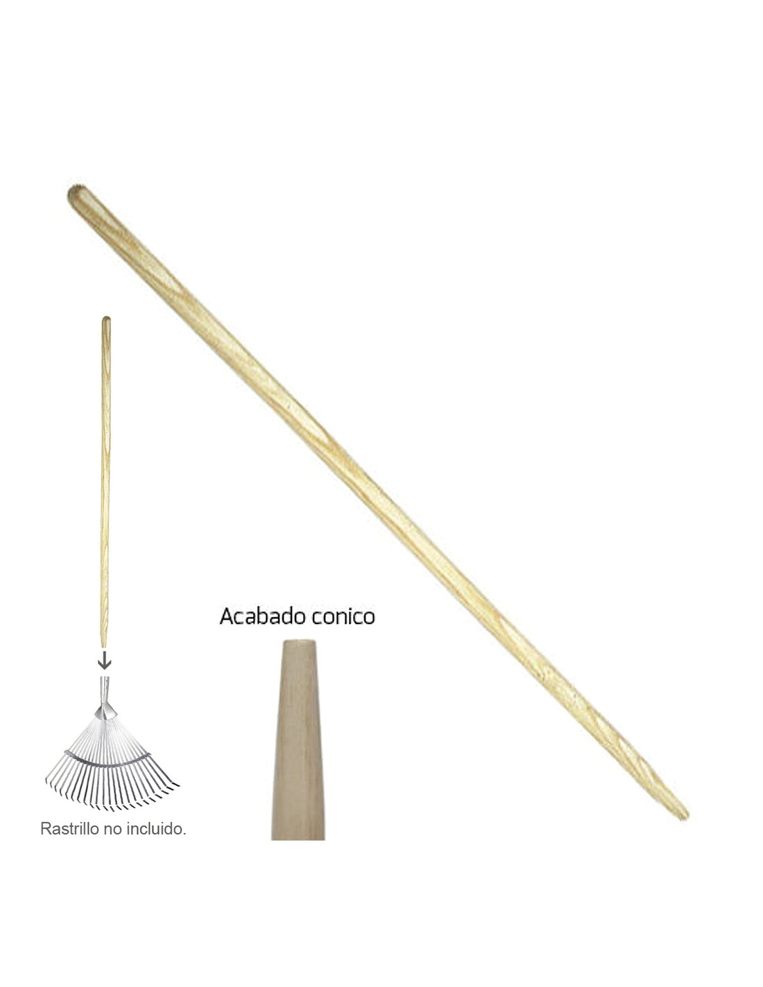 Mango madera para rastrillo metal cónico.