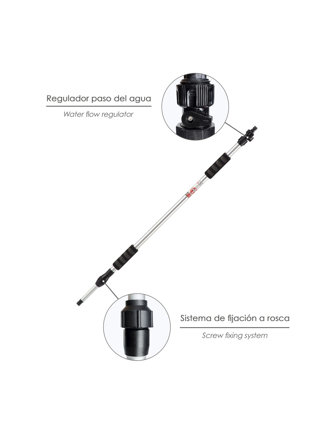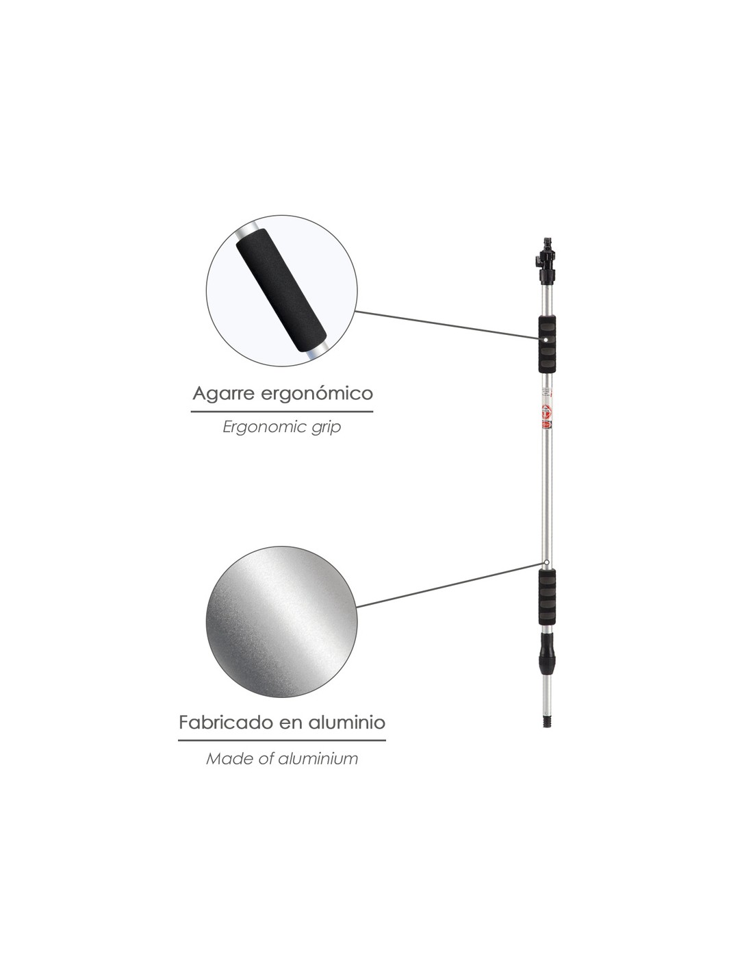 - Cuenta con una rosca hueca para poder usar con cepillos lavacoches.