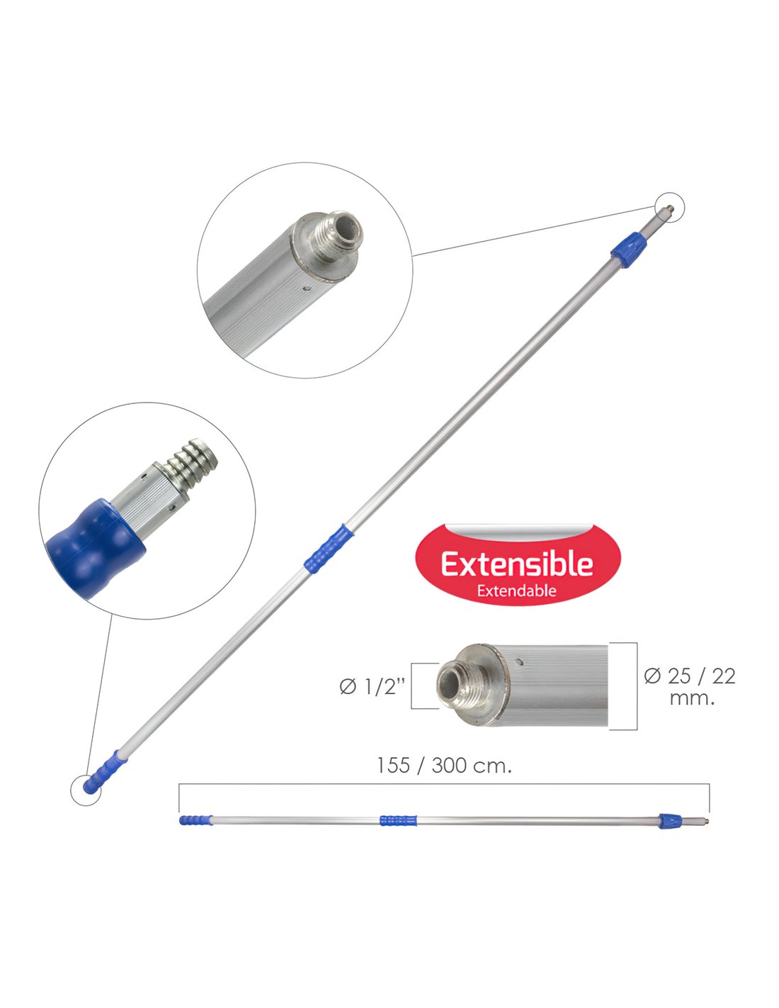 Mango Metálico Extensible Para Cepillo Lava Camiones Wolfpack 155/300 cm.