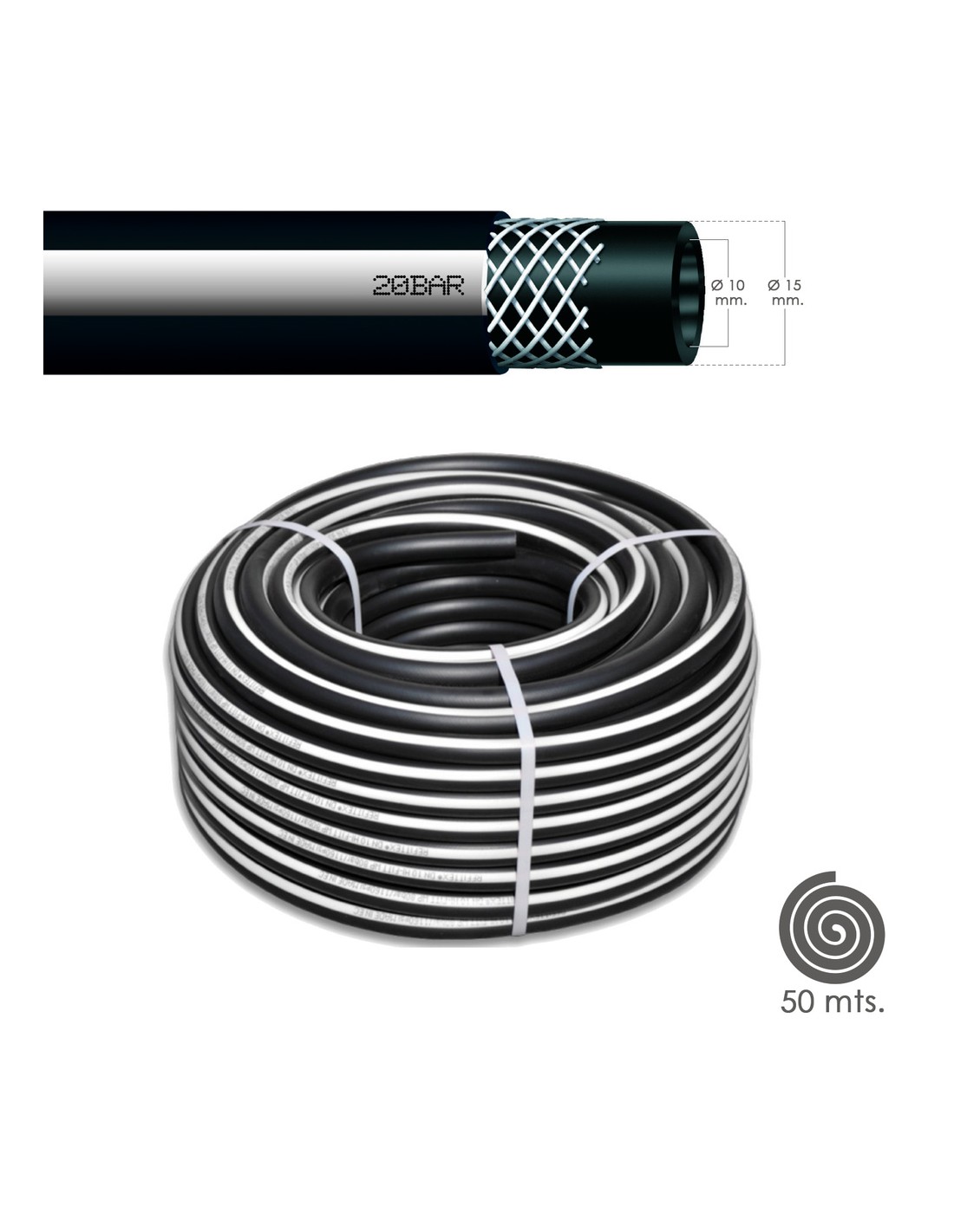 Manguera Aire Comprimido Negro 10 x 19 mm. 20 bares Rollo 50 metros