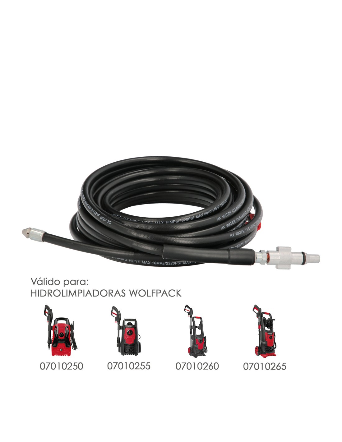 - Compatible con hidrolimpiadoras Wolfpack: 07010250, 07010255, 07010260, 07010265