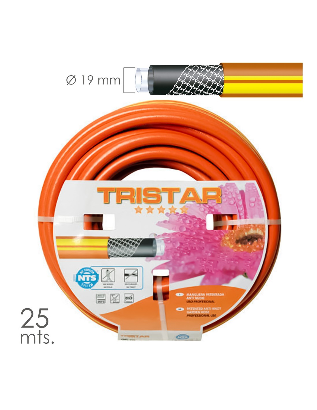 Manguera Tricotado No Torsion 19 mm. - 3/4" Rollo 25 Metros