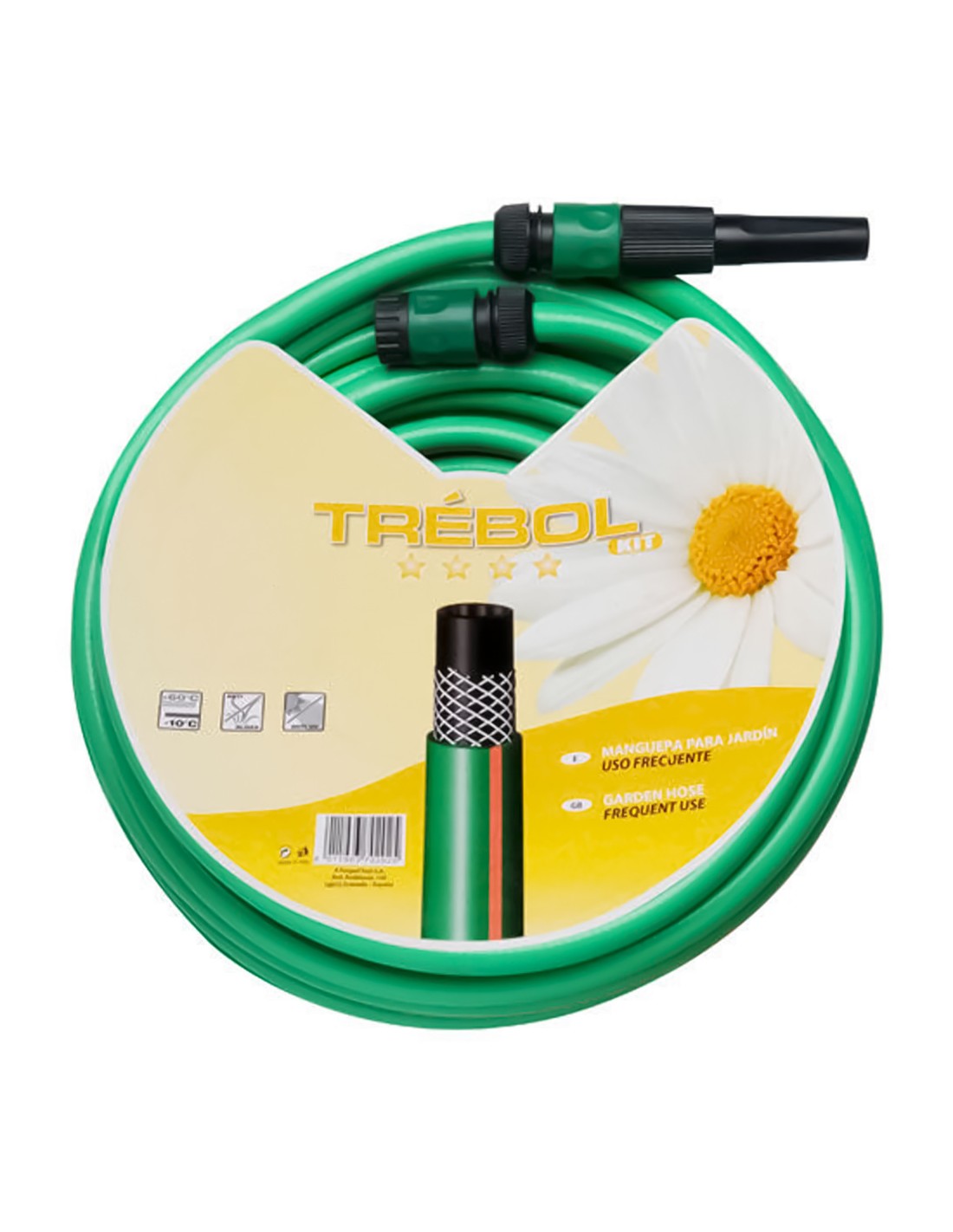 Manguera Verde Trebol Trenzado 15 mm. - 5/8" Rollo 15 metros Con Accesorios