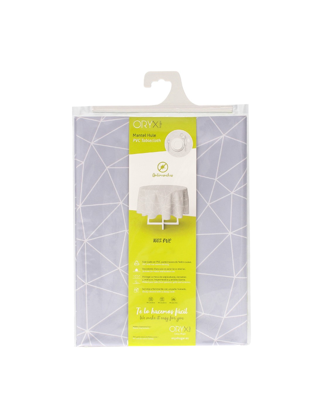 Mantel Hule Redondo Ø 140 cm. Geométrico Gris