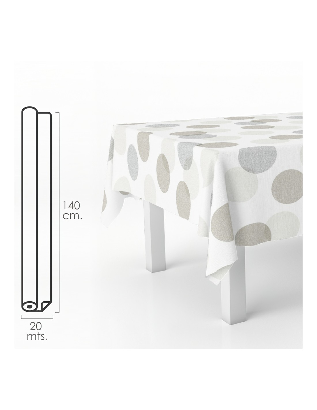 Mantel Hule Rollo 140 x 20 metros. Circulos Beige
