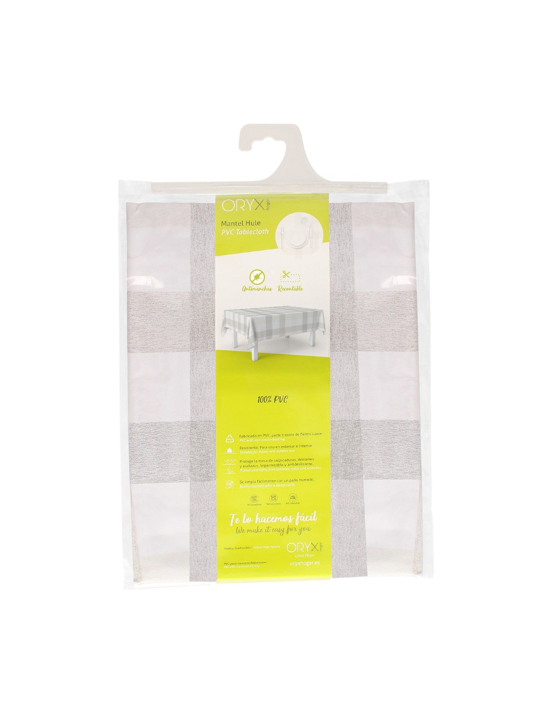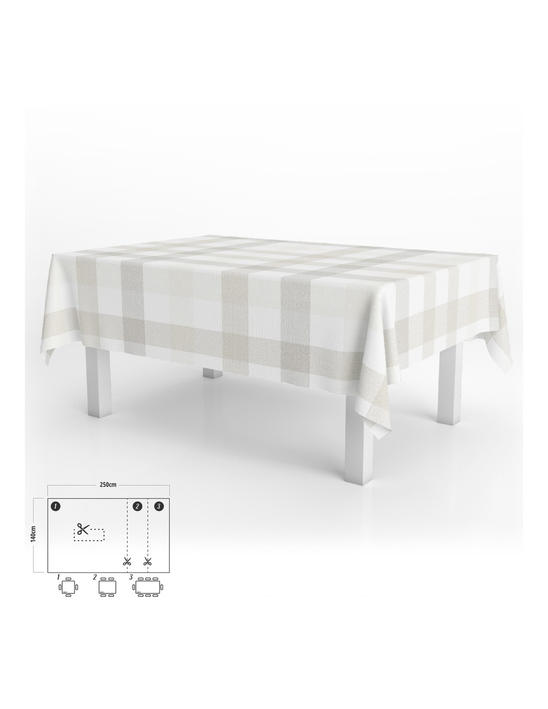 Mantel Hule Rectangular 140 x 250 cm. Cuadros Beige