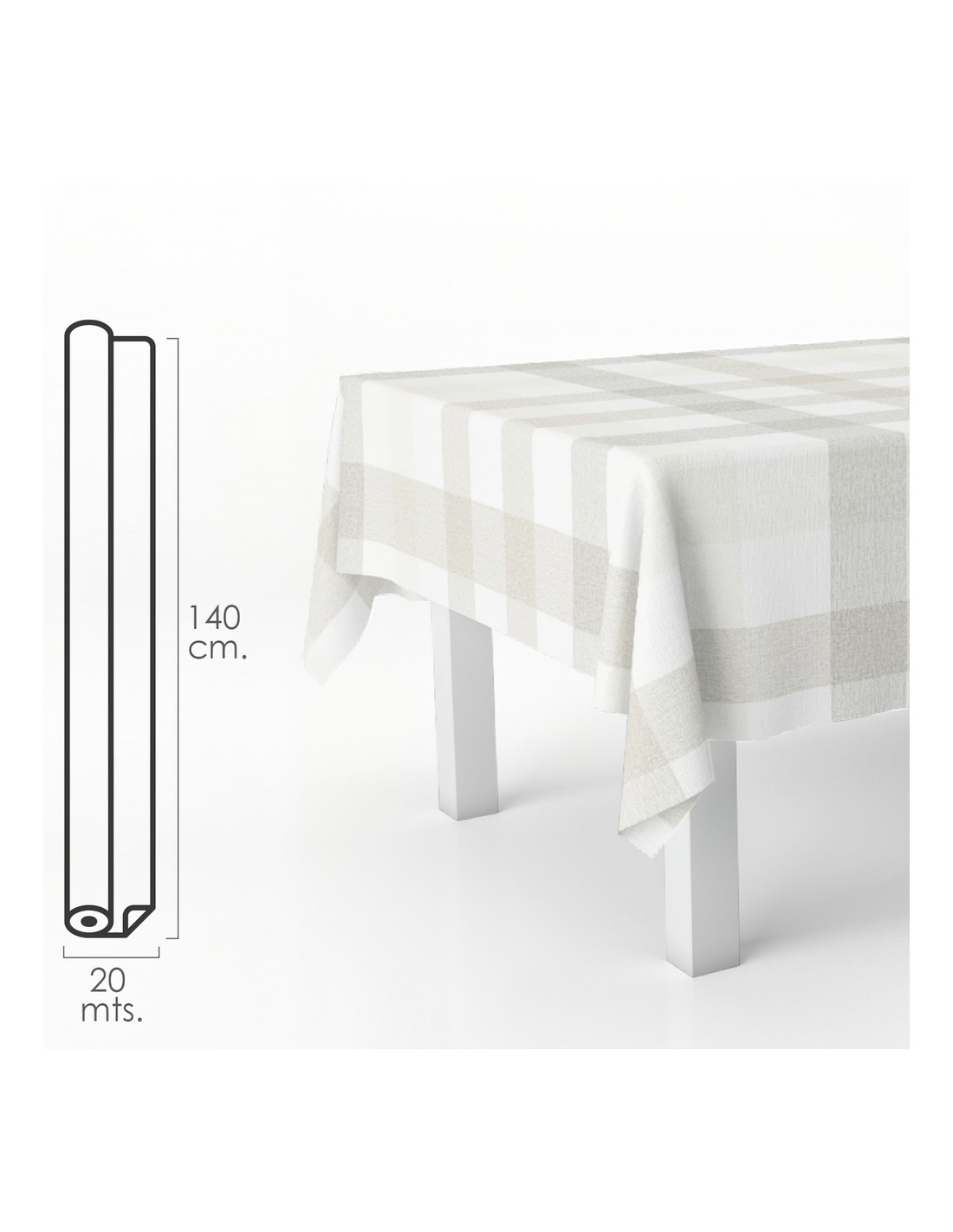 Mantel Hule Rollo 140 x 20 metros. Cuadros Beige