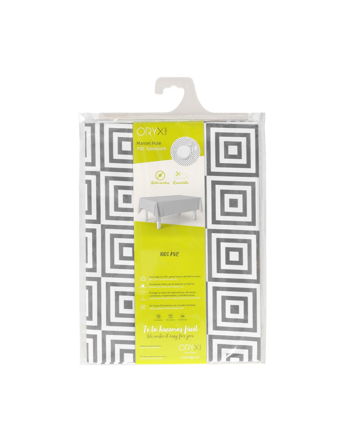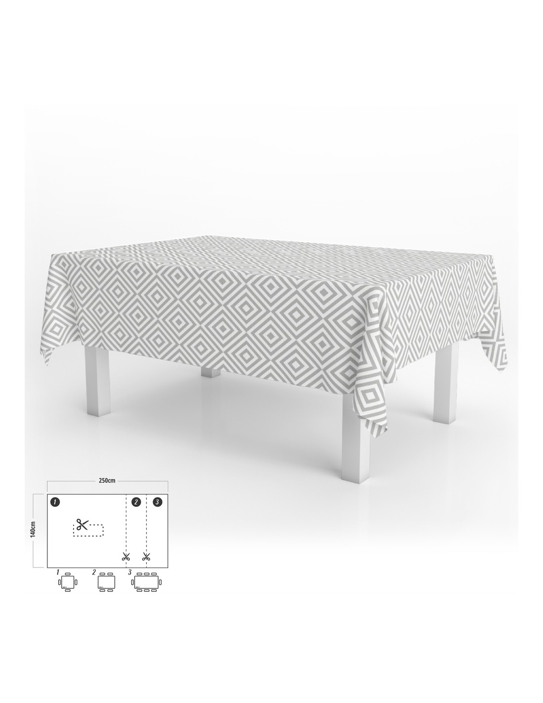 Mantel Hule Rectangular Rombos Grises Impermeable Antimanchas PVC 140x250 cm. Recortable Uso Interior y Exterior