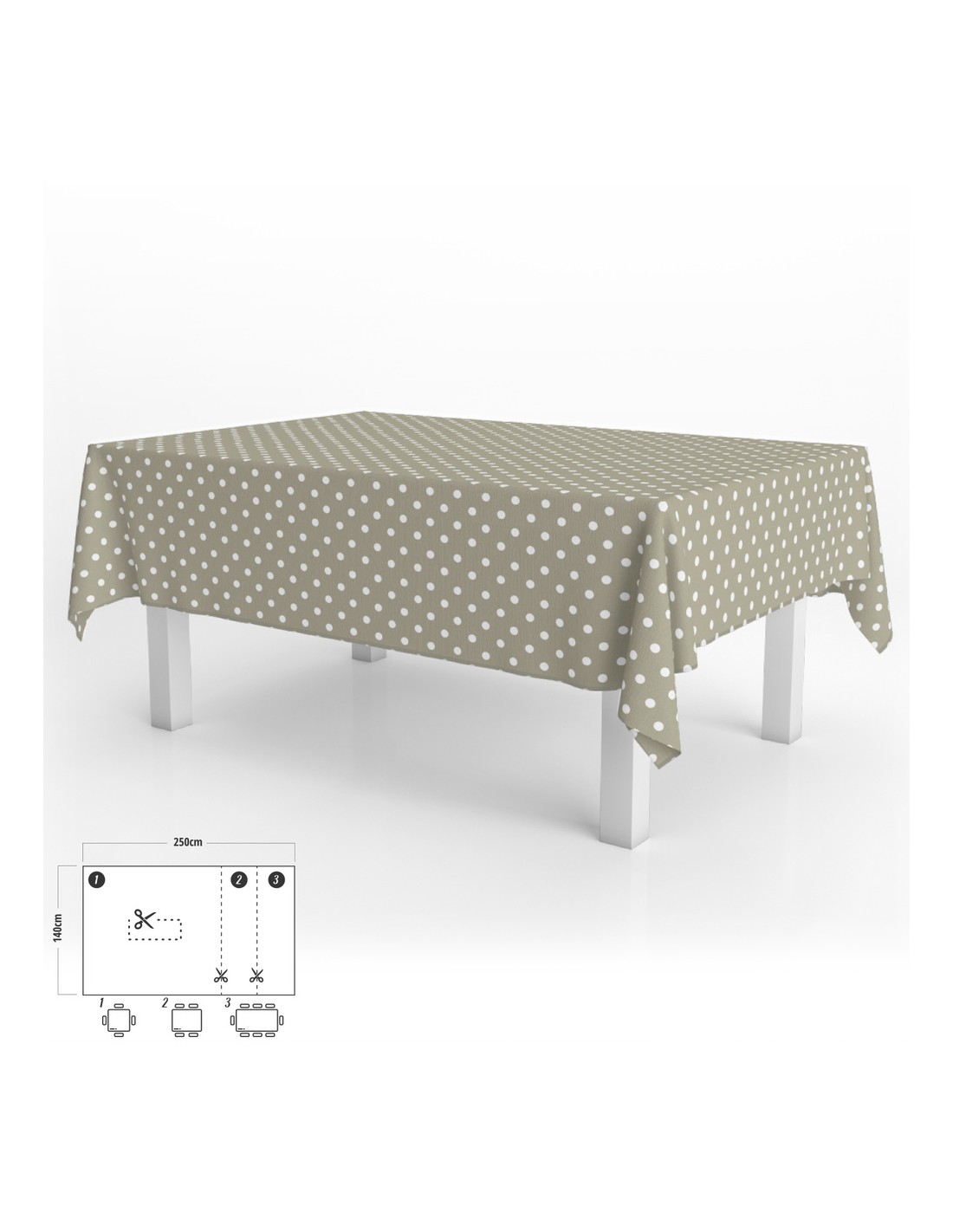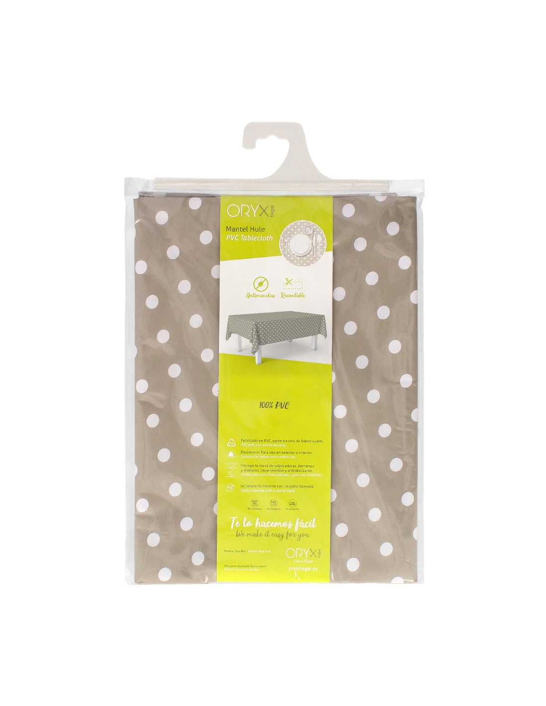 Mantel Hule Rectangular Topos Beige Impermeable Antimanchas PVC 140x250 cm. Recortable Uso Interior y Exterior