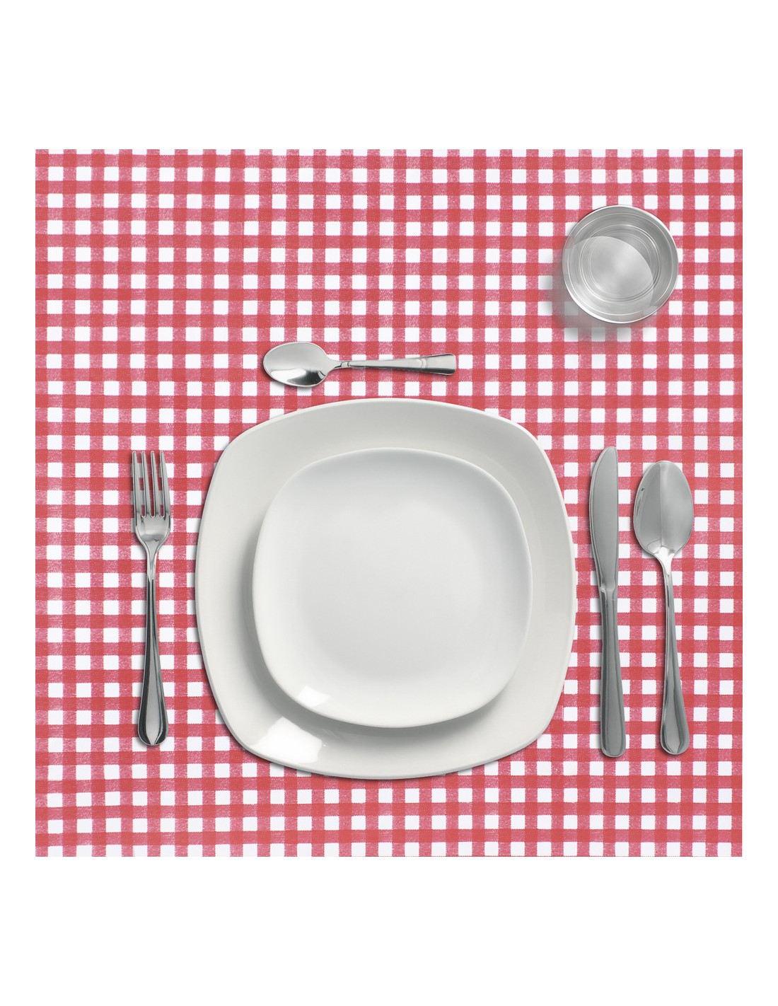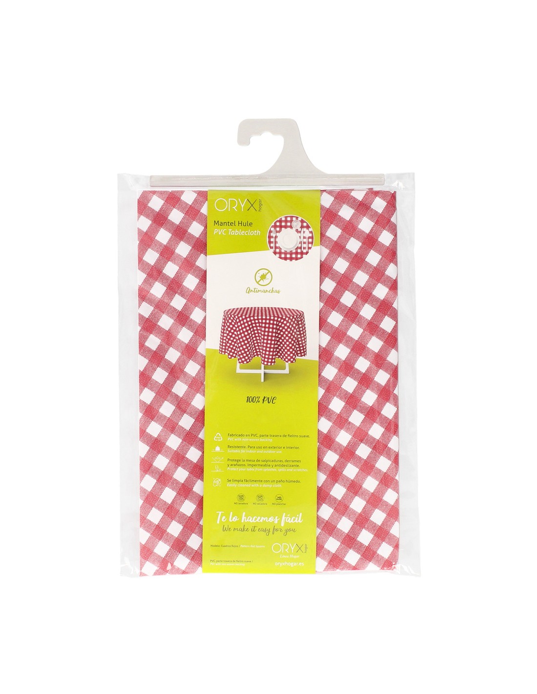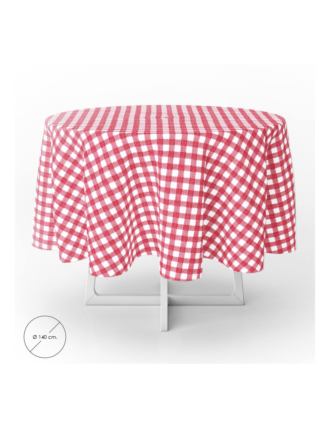 Mantel Hule Redondo Cuadros Rojos Impermeable Antimanchas PVC Ø140 cm. Uso Interior y Exterior